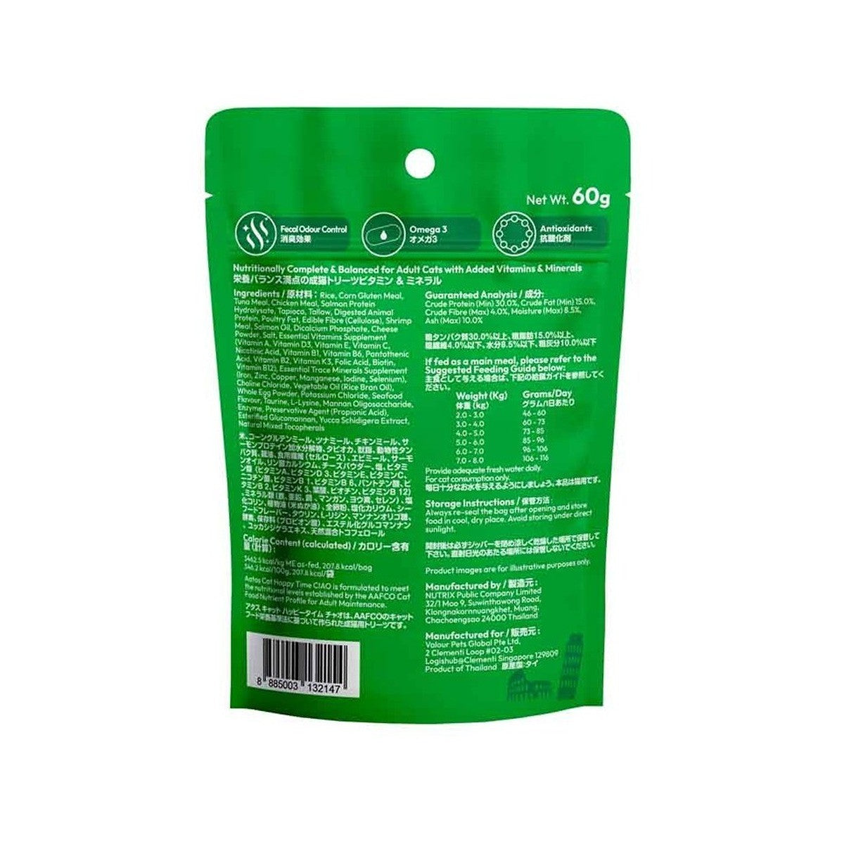 Aatas Cat Happy Time series is formulated to be complete and balanced. Feed alongside Aatas Cat complementary wet food for a flavoursome and healthy diet of high protein and moisture content.