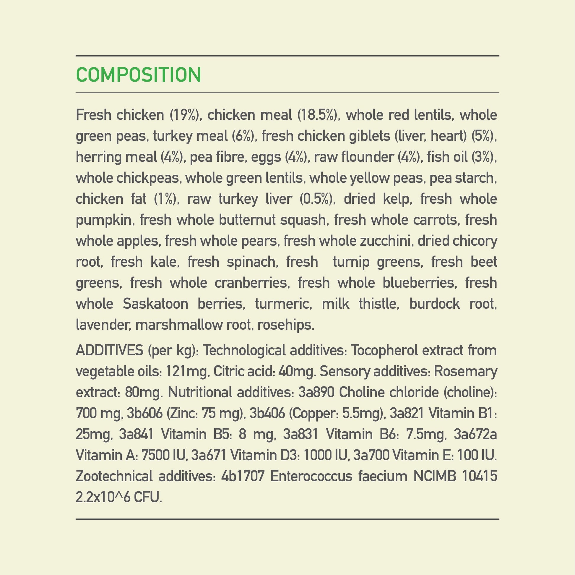 ACANA™ Senior is specially crafted to meet the needs of aging dogs, with balanced nutrition and fewer calories to support their changing metabolism. Packed with 65% quality animal ingredients like fresh free-run chicken and raw wild-caught hake, this recipe delivers rich protein that helps maintain lean muscle and energy. Balanced with 35% fresh, wholesome fruits and vegetables, including whole pumpkin, apples, and leafy greens, it’s as nutritious as it is delicious.