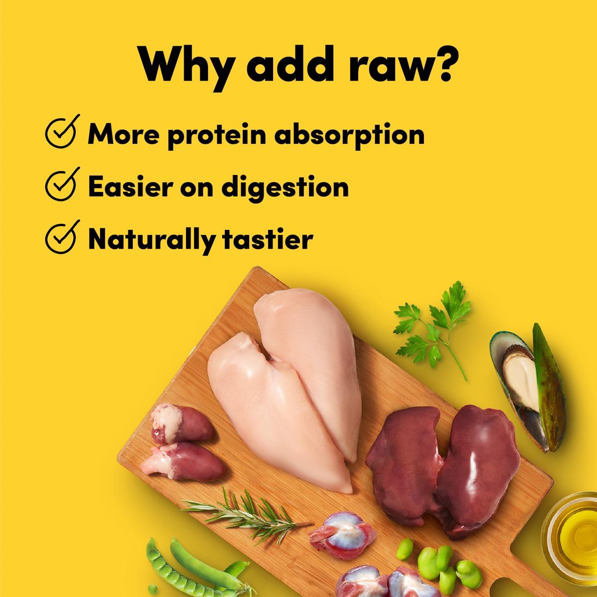 Crafted with care, Animals Like Us chicken cat food recipe combines freeze-dried cage-free New Zealand chicken organs with high quality kibble, ensuring a protein source that mirrors the natural diet of your cat. Our formula is carefully balanced with essential vitamins and minerals to provide a complete and balanced meal, promoting optimal health and vitality for your cat. With our freeze-dried process, we preserve the natural goodness of raw chicken and organs, locking in vital nutrients without compromising on taste or quality. It's a safe and convenient way to incorporate the benefits of raw feeding into your pet's diet, without the hassle of handling raw meat.