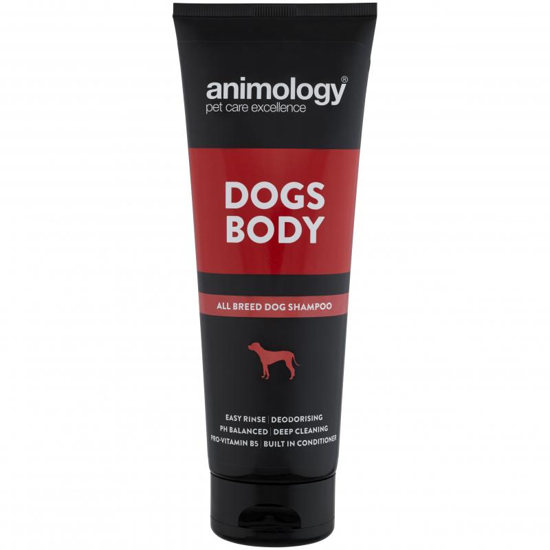 Dogs Body shampoo is an all-breed dog shampoo suitable for cleaning, deodorising and conditioning. With built in conditioner and pro-vitamin B5, Dogs Body helps to keep your dog’s coat beautifully clean and healthy. Dogs Body can be used on all coat and skin types including sensitive skin, and is suitable for all dogs from 6 weeks old.