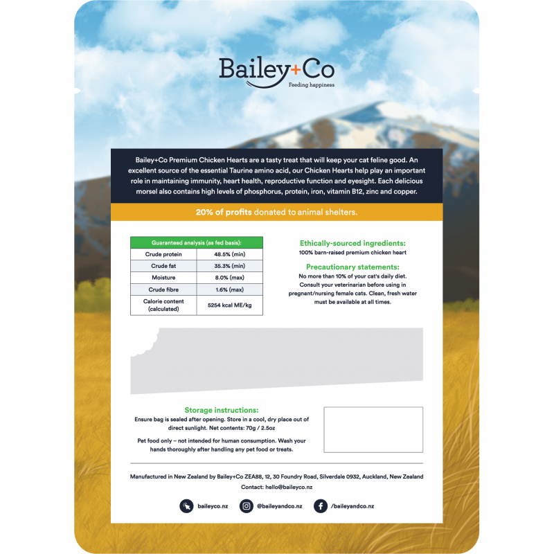 Bailey+Co Freeze Dried NZ Chicken Heart Raw Treat 70g