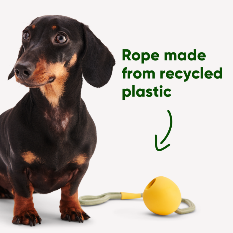 Natural rubber takes the best from nature; it is tough, hard-wearing, and springyenough for heavy chewers. Fantastic for outdoor play! This super-bouncy natural rubber ball is compatible with most ball launchers! Going the distance to keep your dog leaping to the sky. A natural rubber ball on a strong and soft-to-touch recycled PET rope. Great for outdoor play!