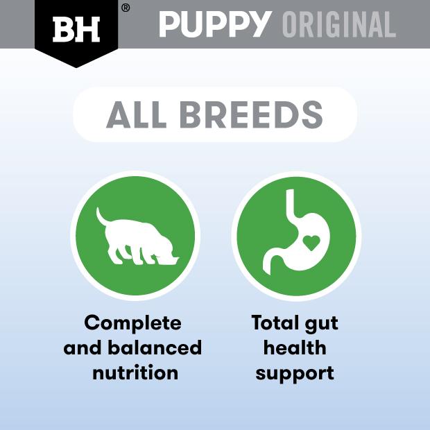 Active puppies have unique nutritional needs and can respond well to different flavours and textures. This delicious wet food has been specifically designed as a complete source of nutrition for growing puppies. It includes the goodness of chicken – a highly digestible, lean and versatile protein, packed with amino acids for building strong bones and muscles. Created with the help of animal nutritionists and vets, it also includes fish oil for healthy brain and cognitive development. Sweet potato offers a rich, natural source of fibre which can help with your puppy’s overall gut health, and eggs support liver function, as well as muscle growth and maintenance. Serve this tasty product on its own or use as a topper with Black Hawk Puppy dry food.