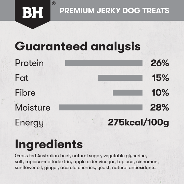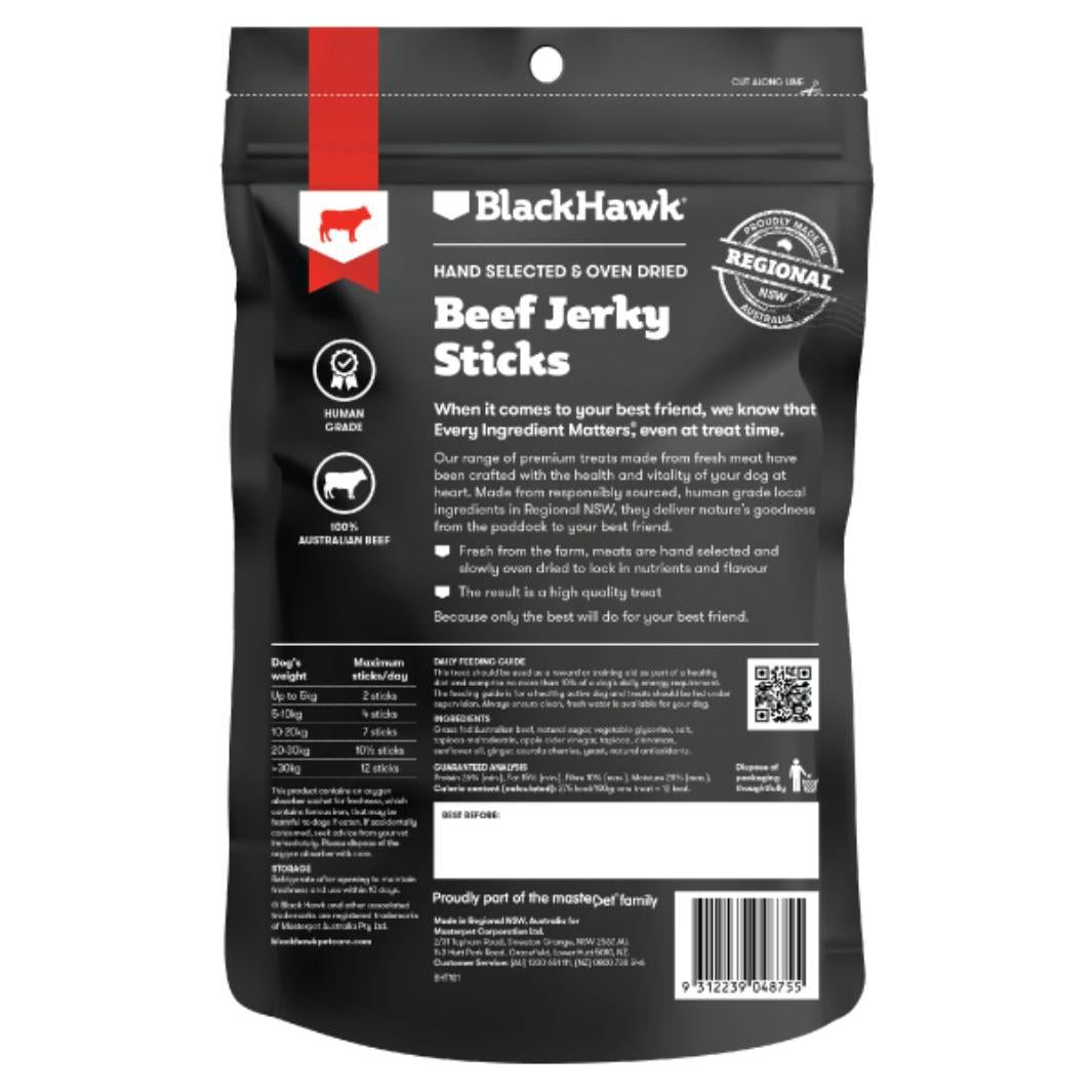 Black Hawk premium jerky treats deliver natures goodness from the paddock to your best friend. Fresh from the farm, meats are hand selected, cut and slowly oven dried to lock in nutrients and flavour. These premium beef jerky straps are the perfect reward or training treat.