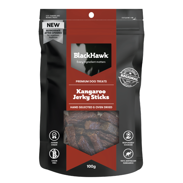 Just like premium jerky for humans, Black Hawk Jerky Treats are made from fresh meat and contain a high level of moisture to ensure great texture and delicious flavour. To maintain maximum freshness, please REFIRGERATE AFTER OPENING and use within 10 days.
