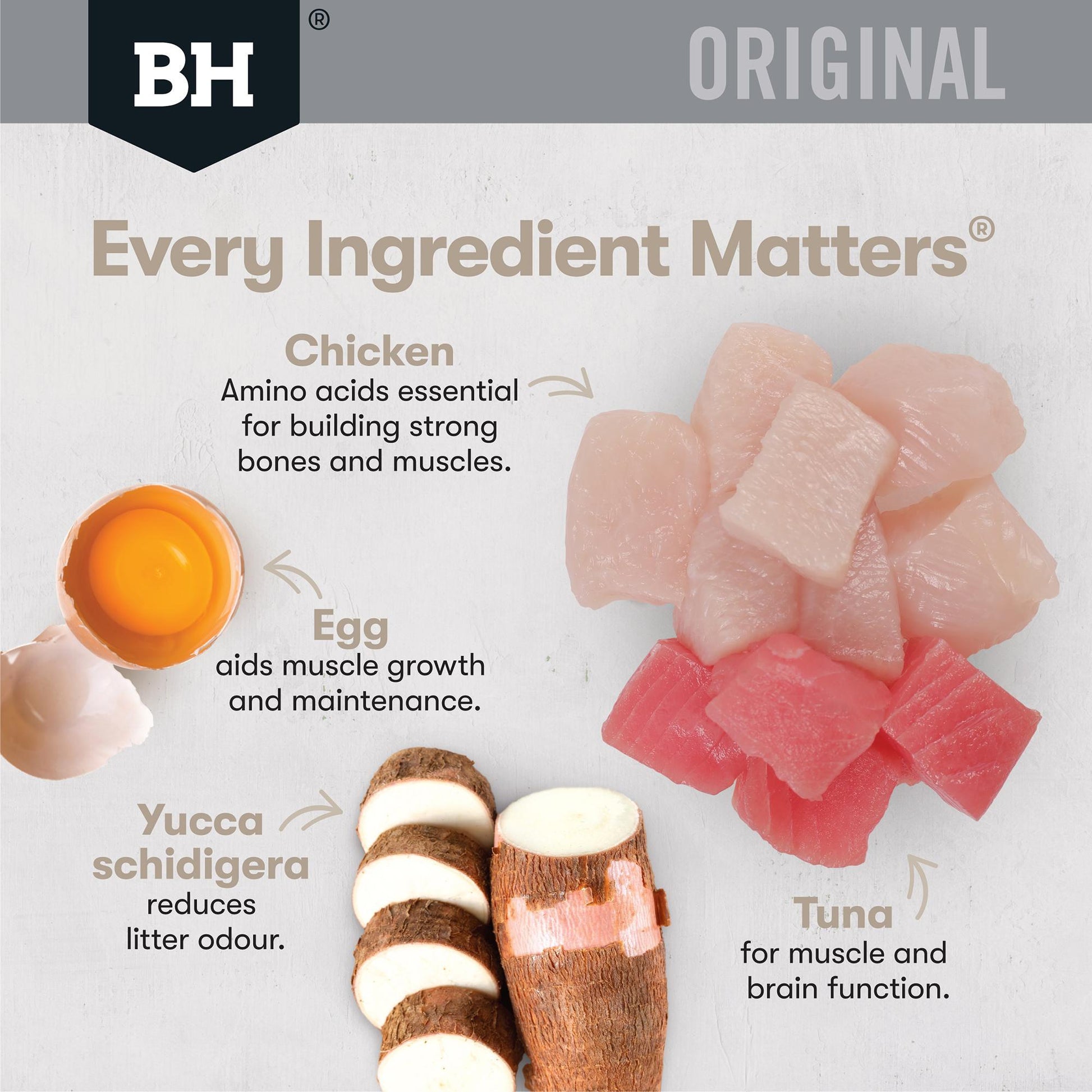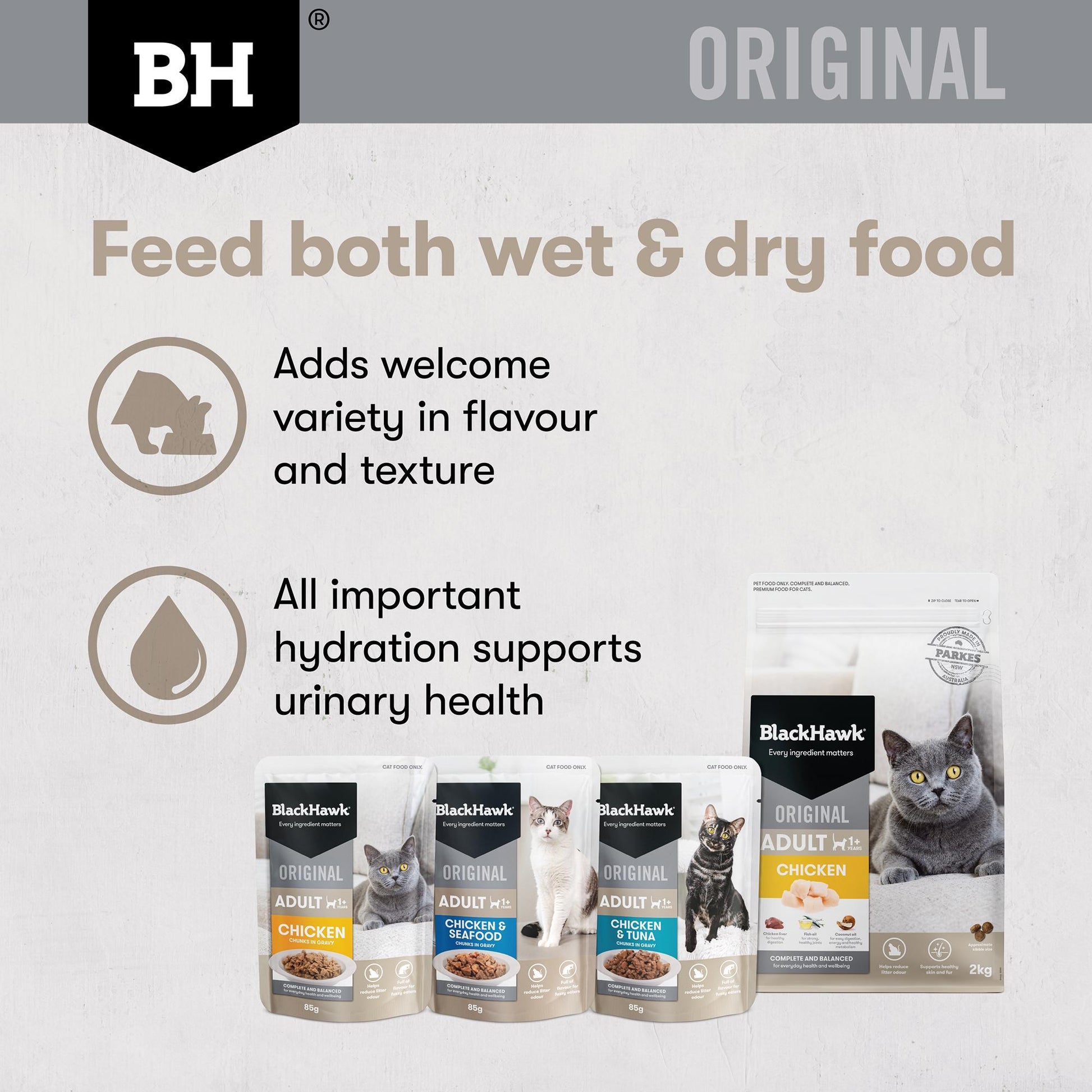 Specifically developed for cats, with proteins and textures they love, and the complete and balanced nutrition they need. Every ingredient that goes into our recipes has a nutritional purpose, so you’ll never find wheat, corn, soy, artificial preservatives, colours or flavours in Black Hawk.