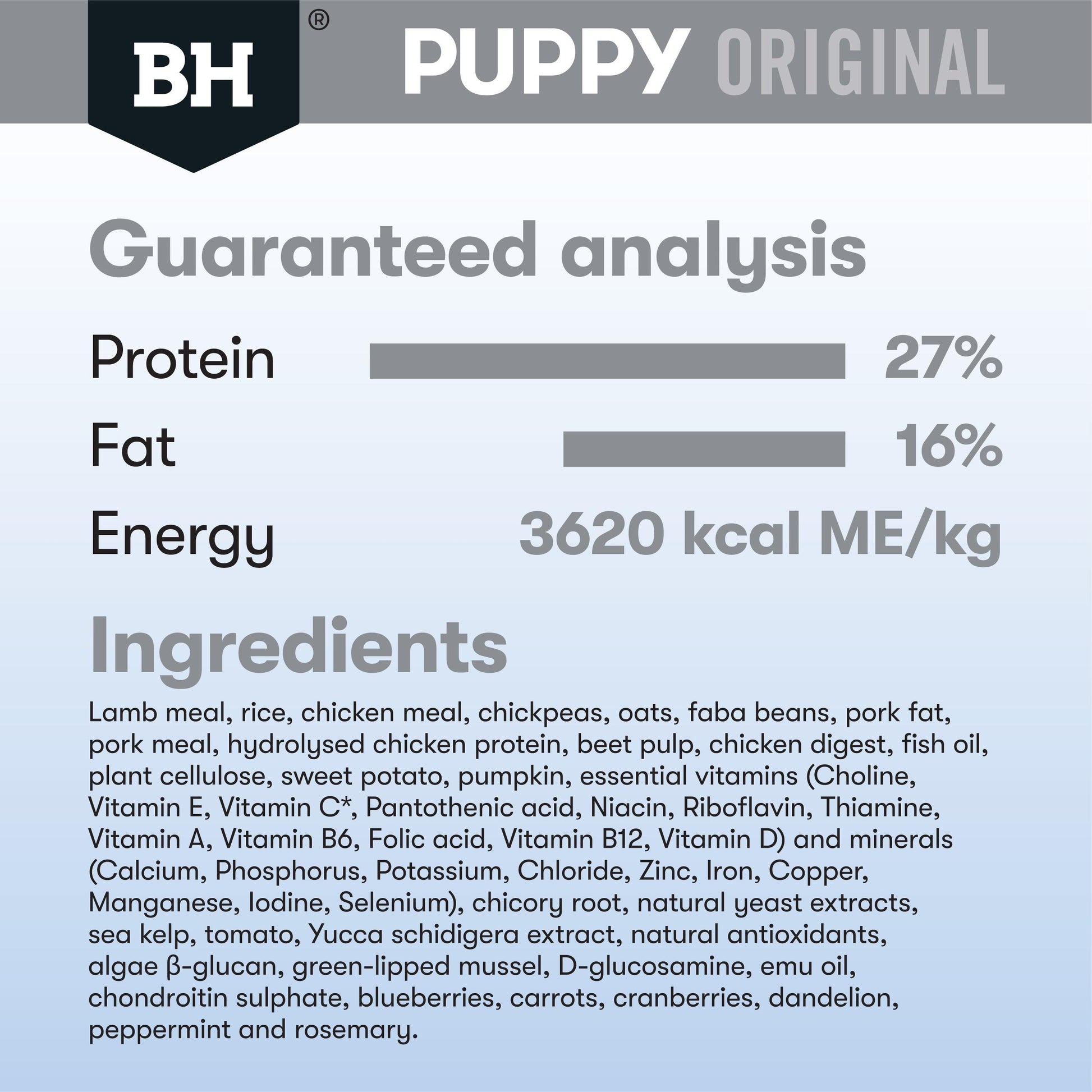 Made with Australian grass fed lamb, a highly digestible protein source rich in iron and vitamin B12 for strong muscles, healthy bones, and vitality. This balanced high-quality diet also contains green-lipped mussel that may support healthy joints and chicory root, a natural prebiotic superfood that helps support intestinal health and reduce food sensitivities. A blend of Australian sourced rice and oats helps provide energy to the developing body and brain.
