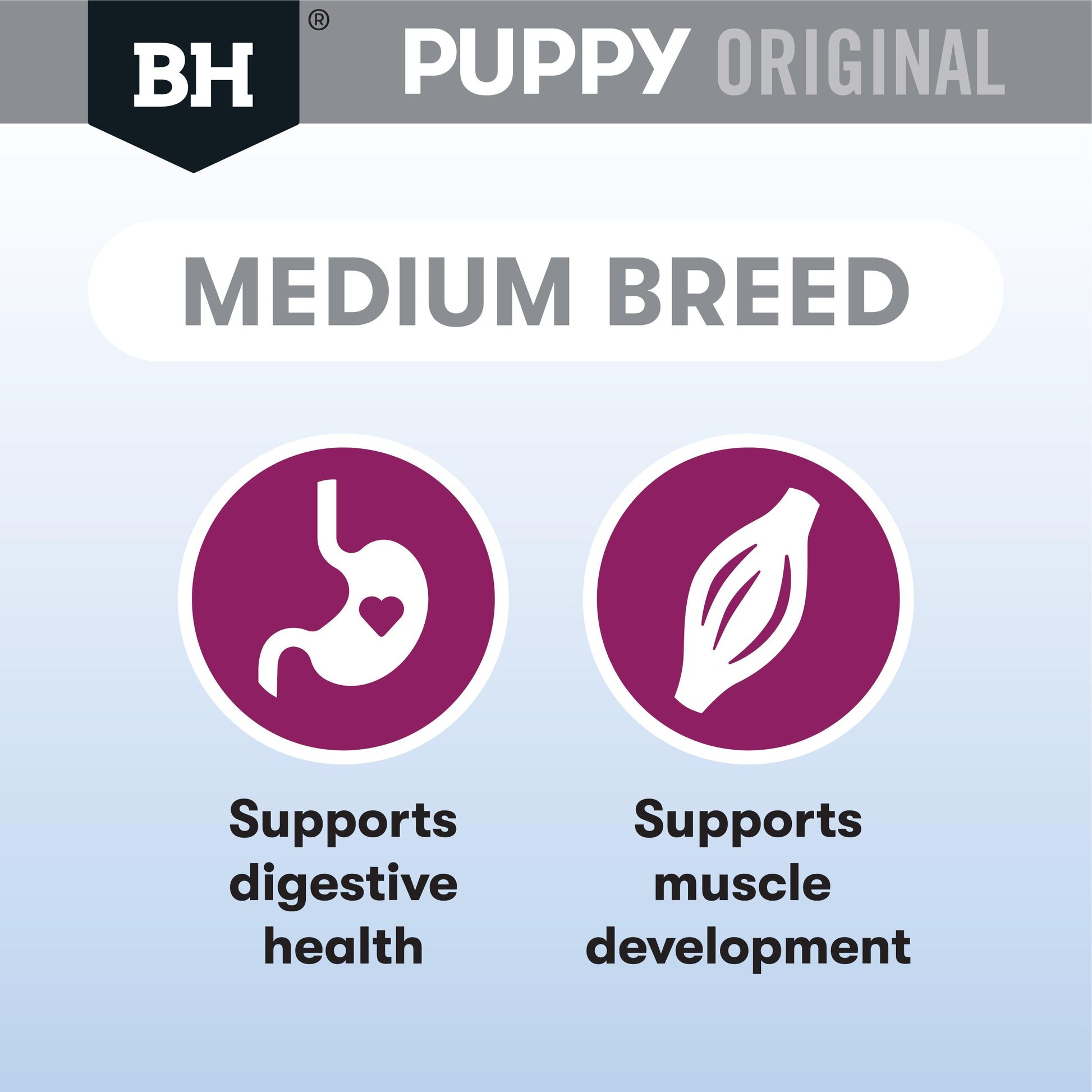 Black Hawk Original Lamb & Rice for Medium Breed Puppies has been formulated by pet nutritionists and vets to help your puppy thrive and reach their potential for growth and development. Made with Australian grass fed lamb: a highly digestible protein source, rich in iron and vitamin B12 for strong muscles, healthy bones, and vitality. This balanced high-quality diet also contains chicory root, a natural prebiotic superfood that helps support intestinal health and reduce food sensitivities. Blueberries and cranberries, rich in antioxidants may help immunity and natural defences, while rosemary a highly effective natural preservative may improve cell function.