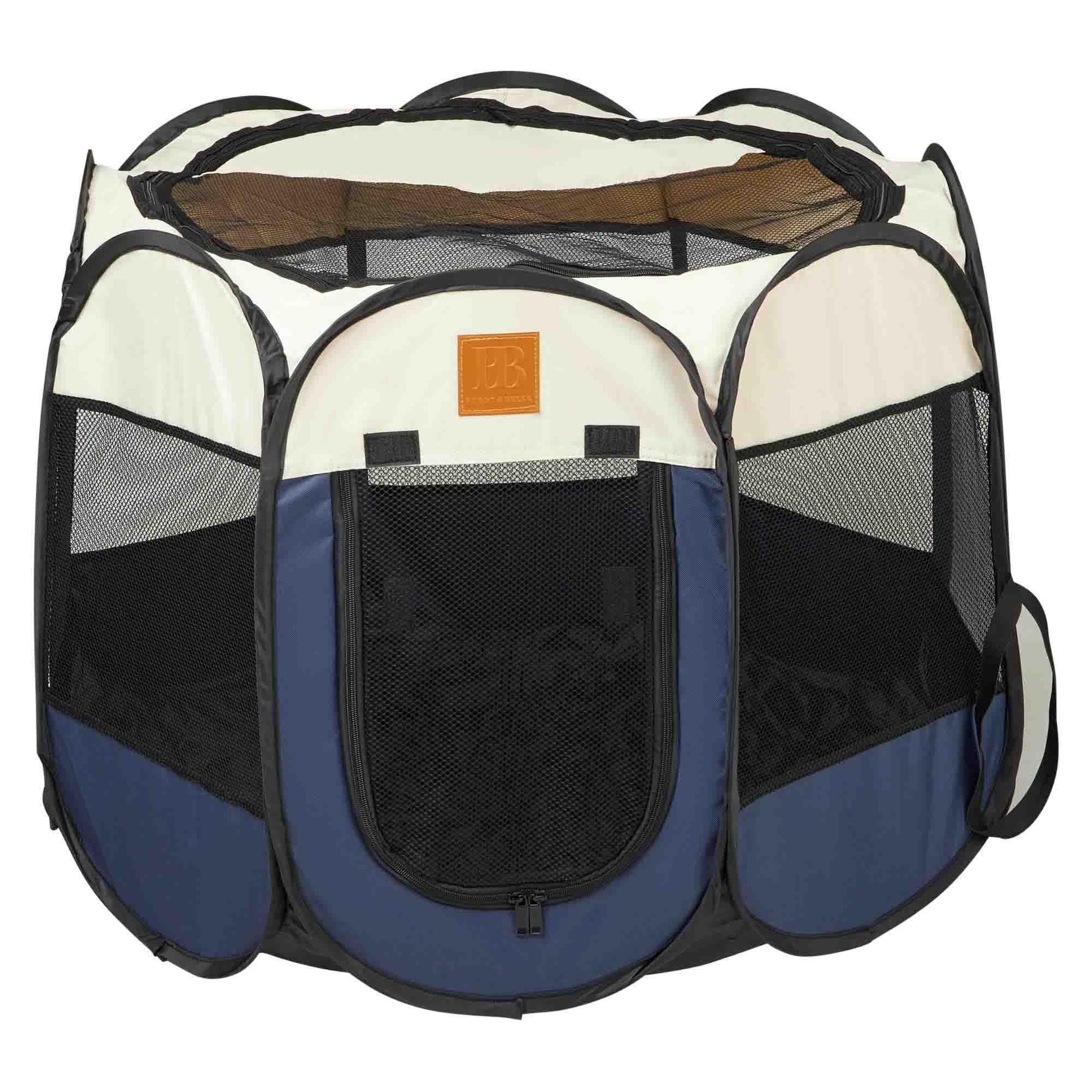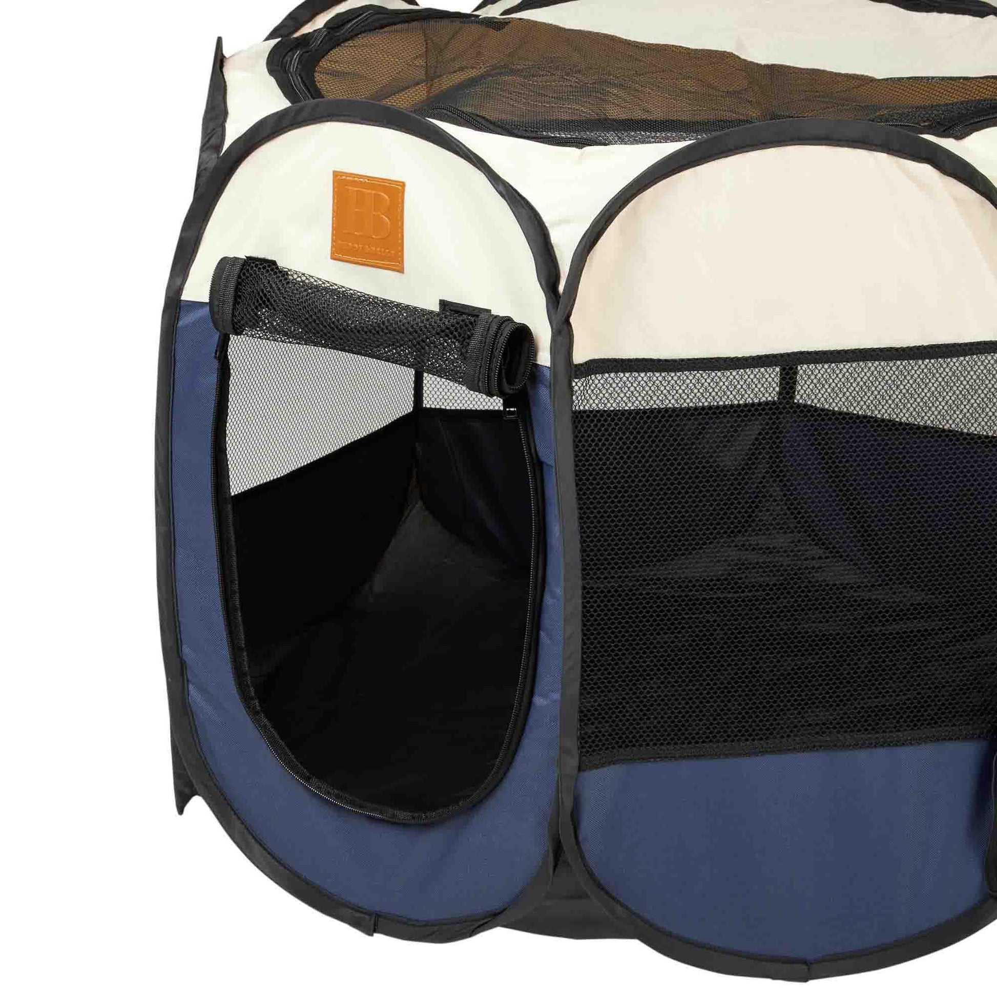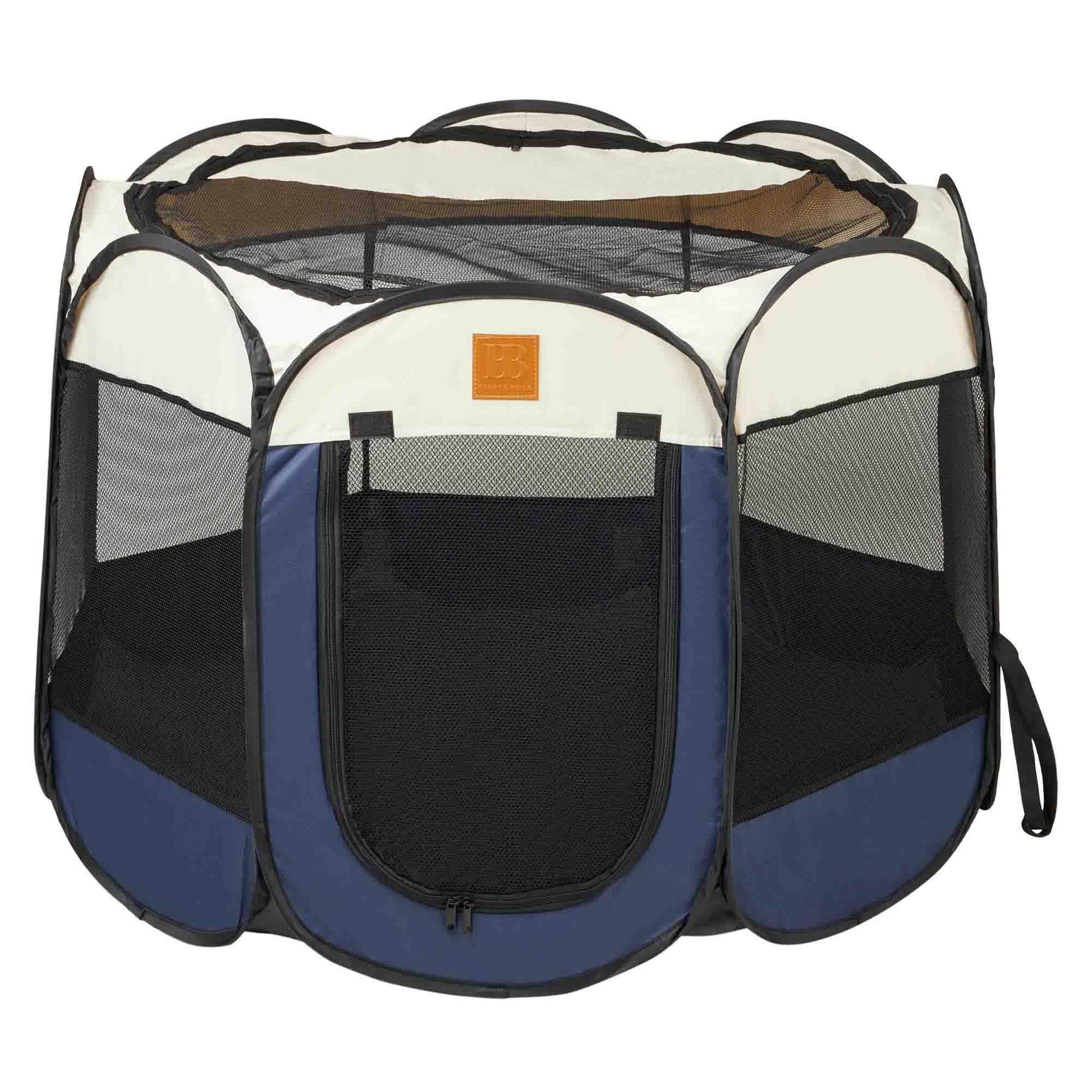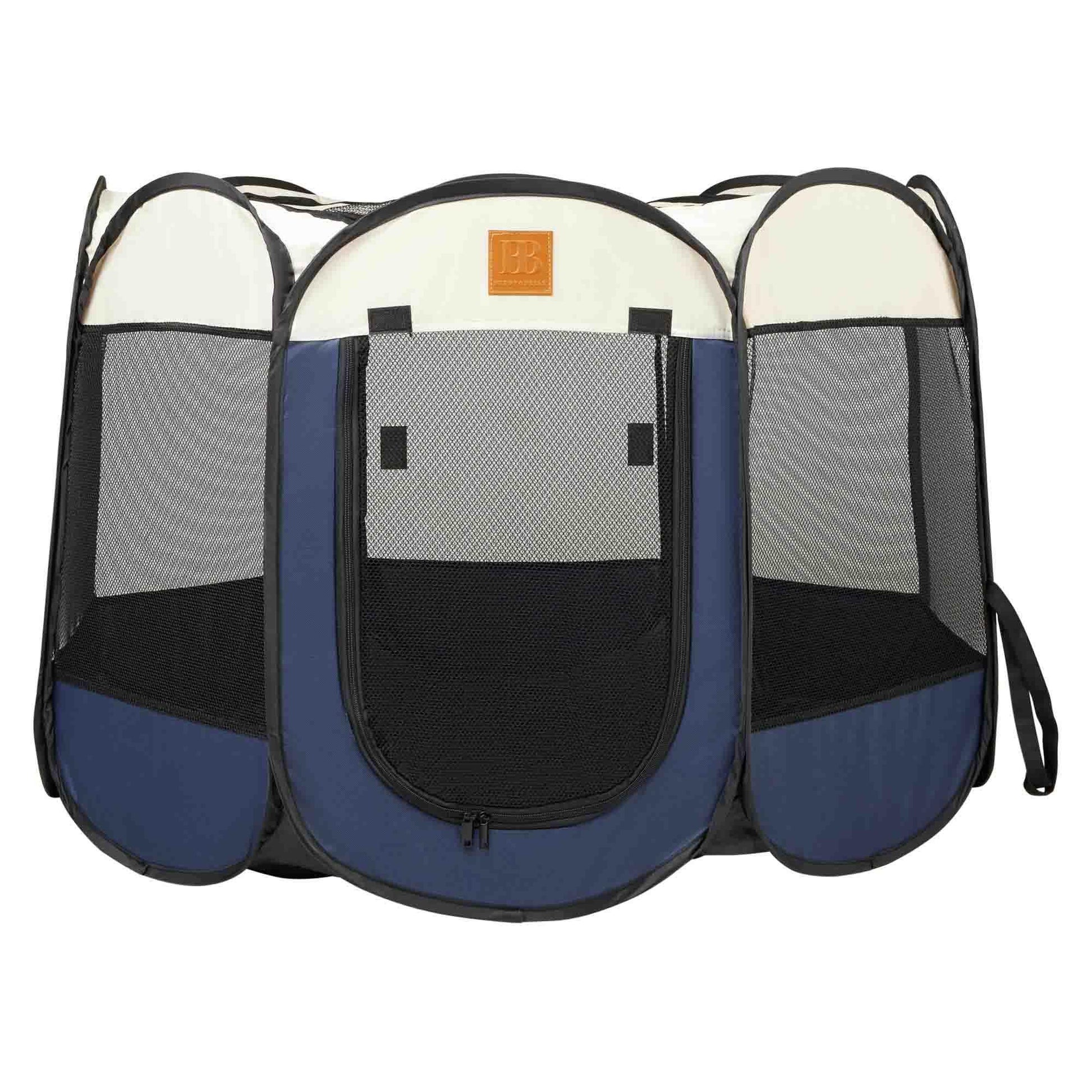 Create a play space anywhere you go with the Buddy & Belle Collapsible Playpen. Featuring a strong steel frame and multiple mesh panels for airflow and visibility, it can be easily accessed via the top or side zippered openings. Easily folds flat into the provided carry bag for effortless transportation and storage when not in use. Designed as a safe and secure place for your pet to play in, this portable playpen is perfect for the backyard or the campsite.