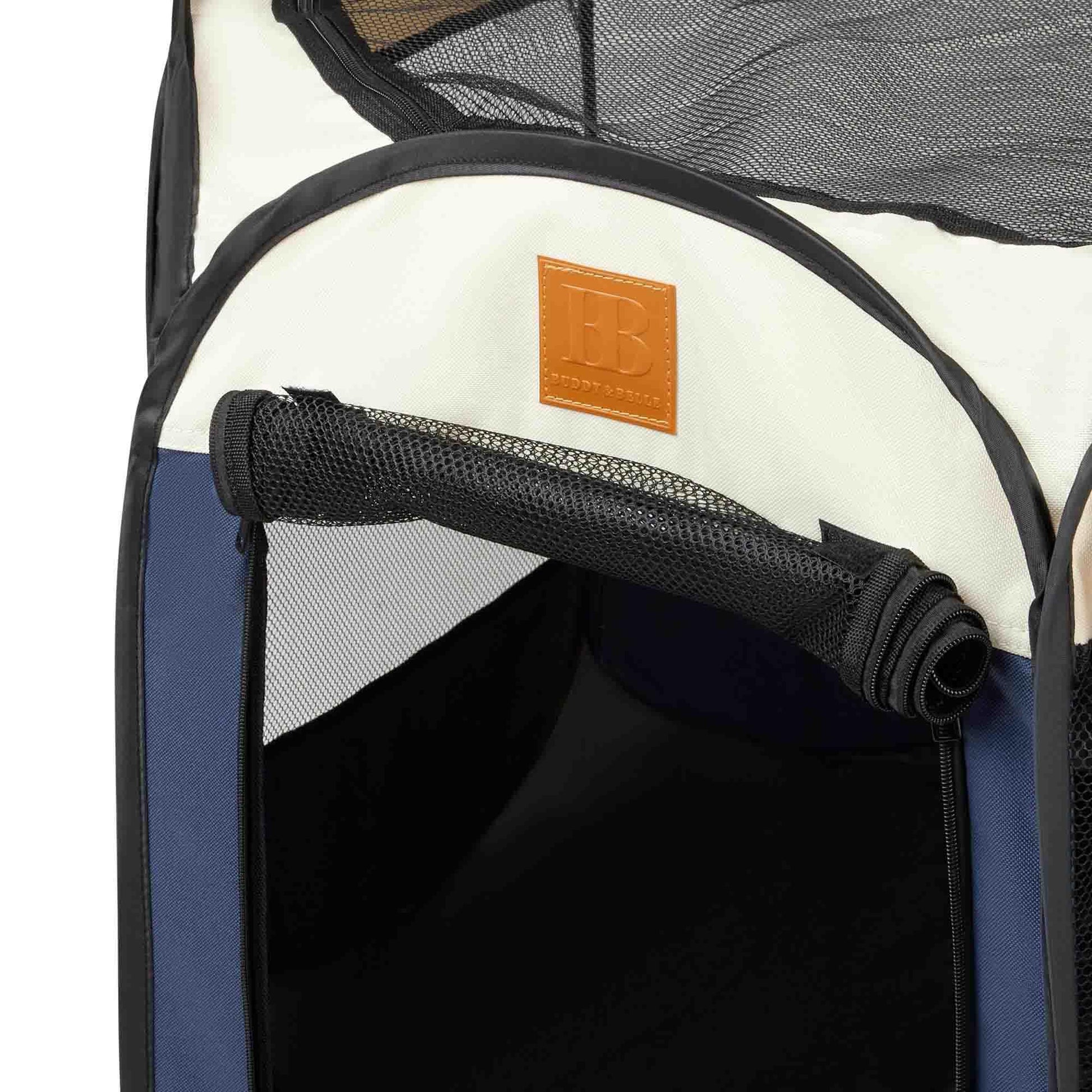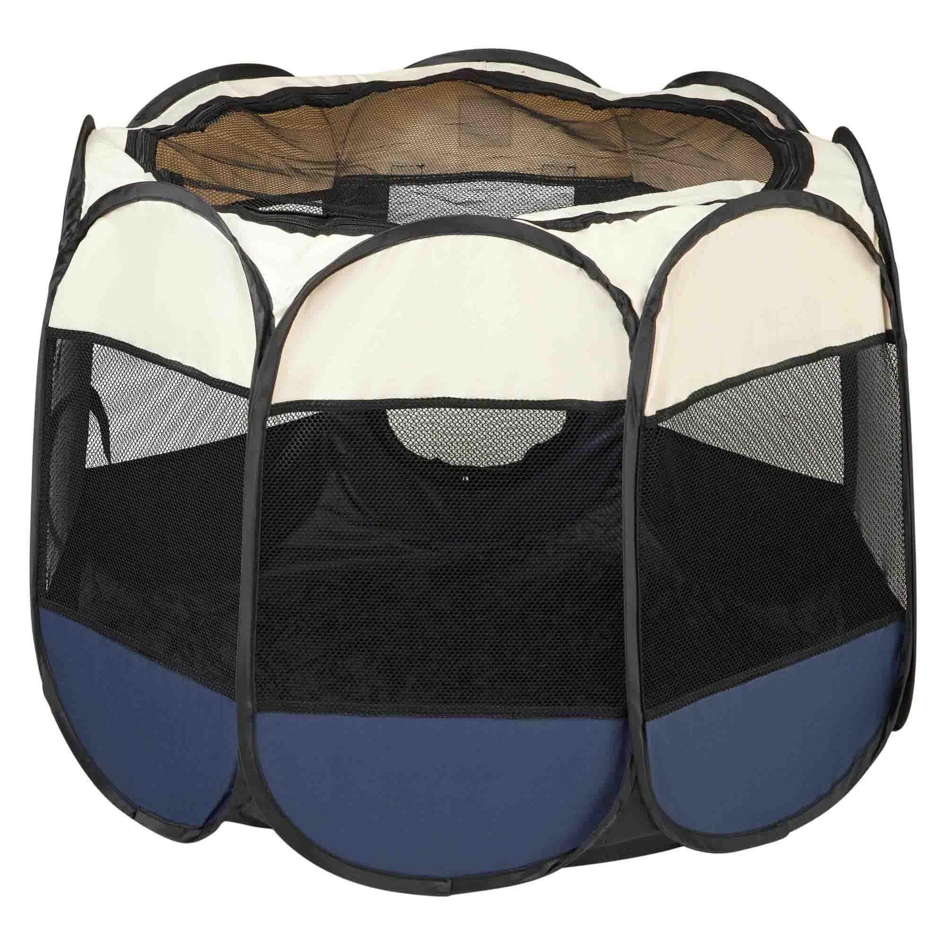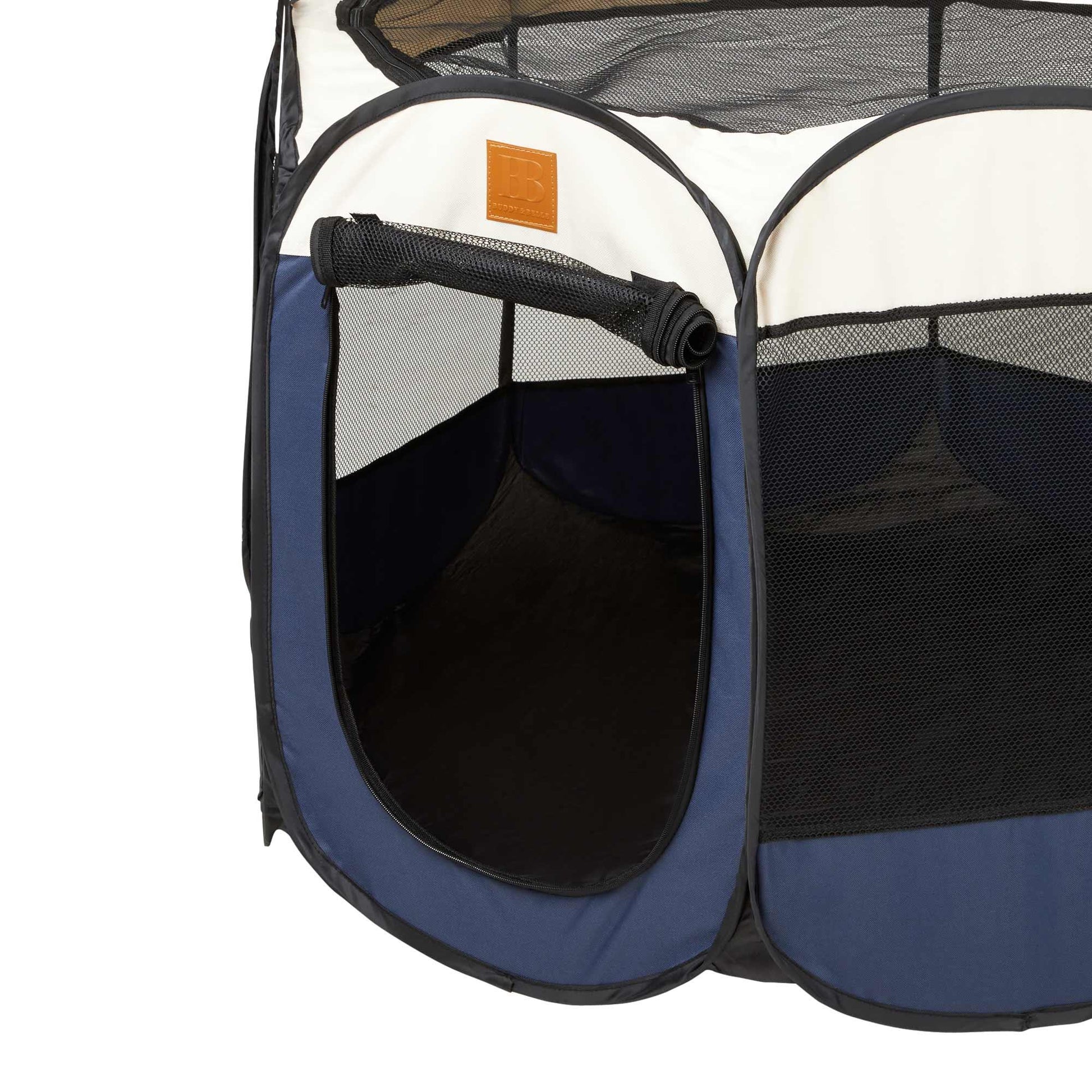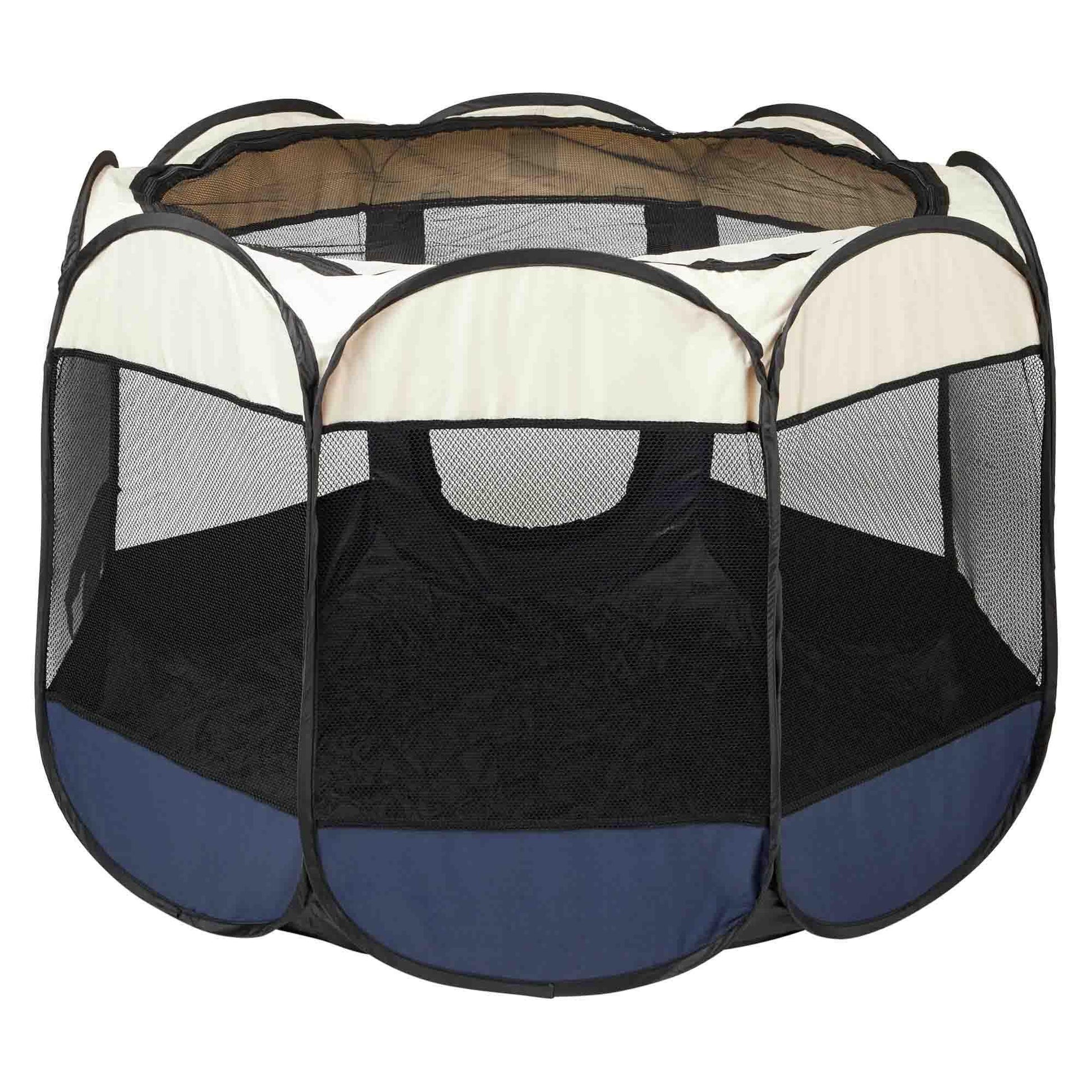 Create a play space anywhere you go with the Buddy & Belle Collapsible Playpen. Featuring a strong steel frame and multiple mesh panels for airflow and visibility, it can be easily accessed via the top or side zippered openings. Easily folds flat into the provided carry bag for effortless transportation and storage when not in use. Designed as a safe and secure place for your pet to play in, this portable playpen is perfect for the backyard or the campsite.