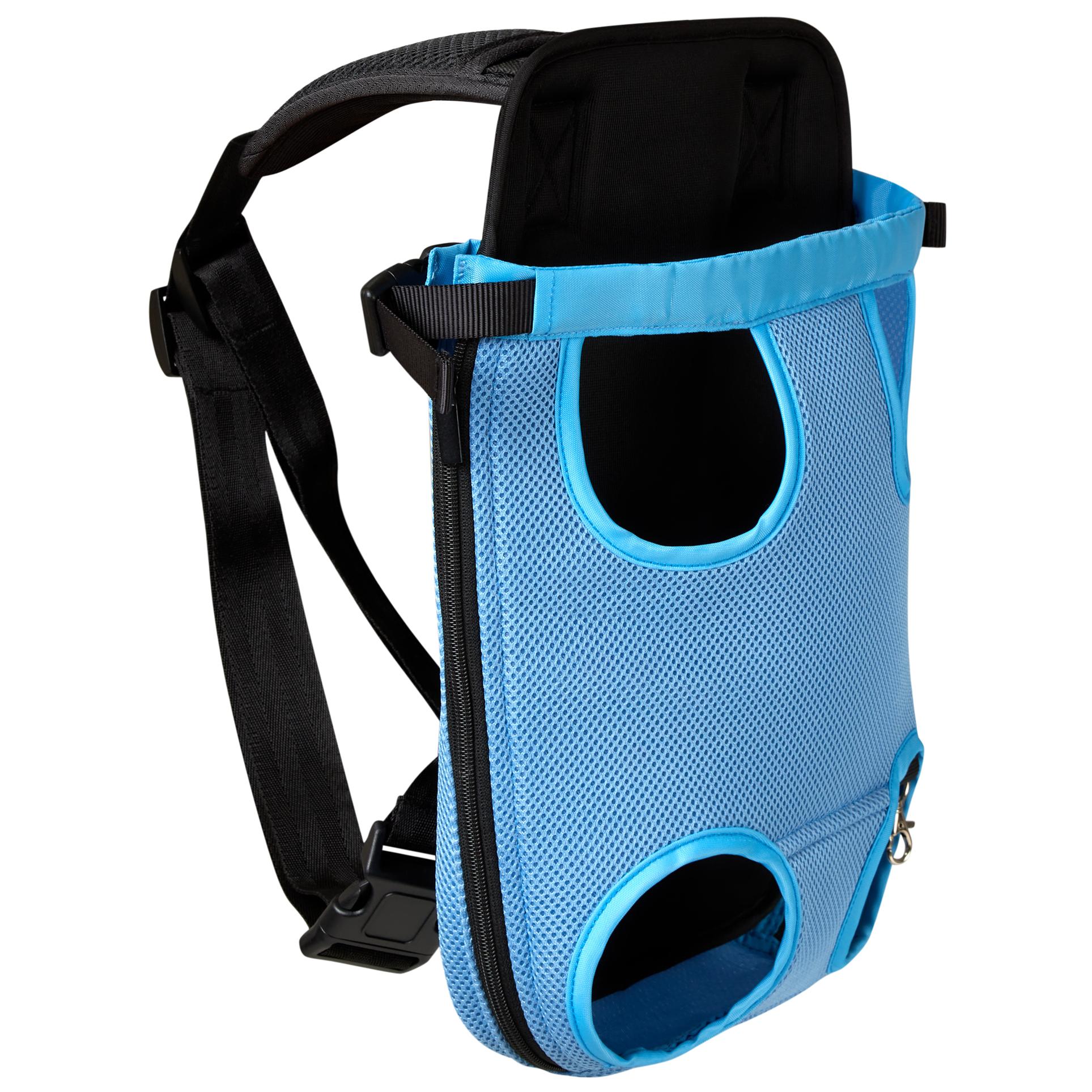 Take your dog out anywhere hands-free with the Buddy & Belle Dog Backpack. It features fully adjustable padded straps, a padded back and pouch, zips on each side and an attached safety strap to clip onto your pet's collar. Designed to be comfortably worn on the chest or back, it is perfect for hiking, walking, camping, or commuting.