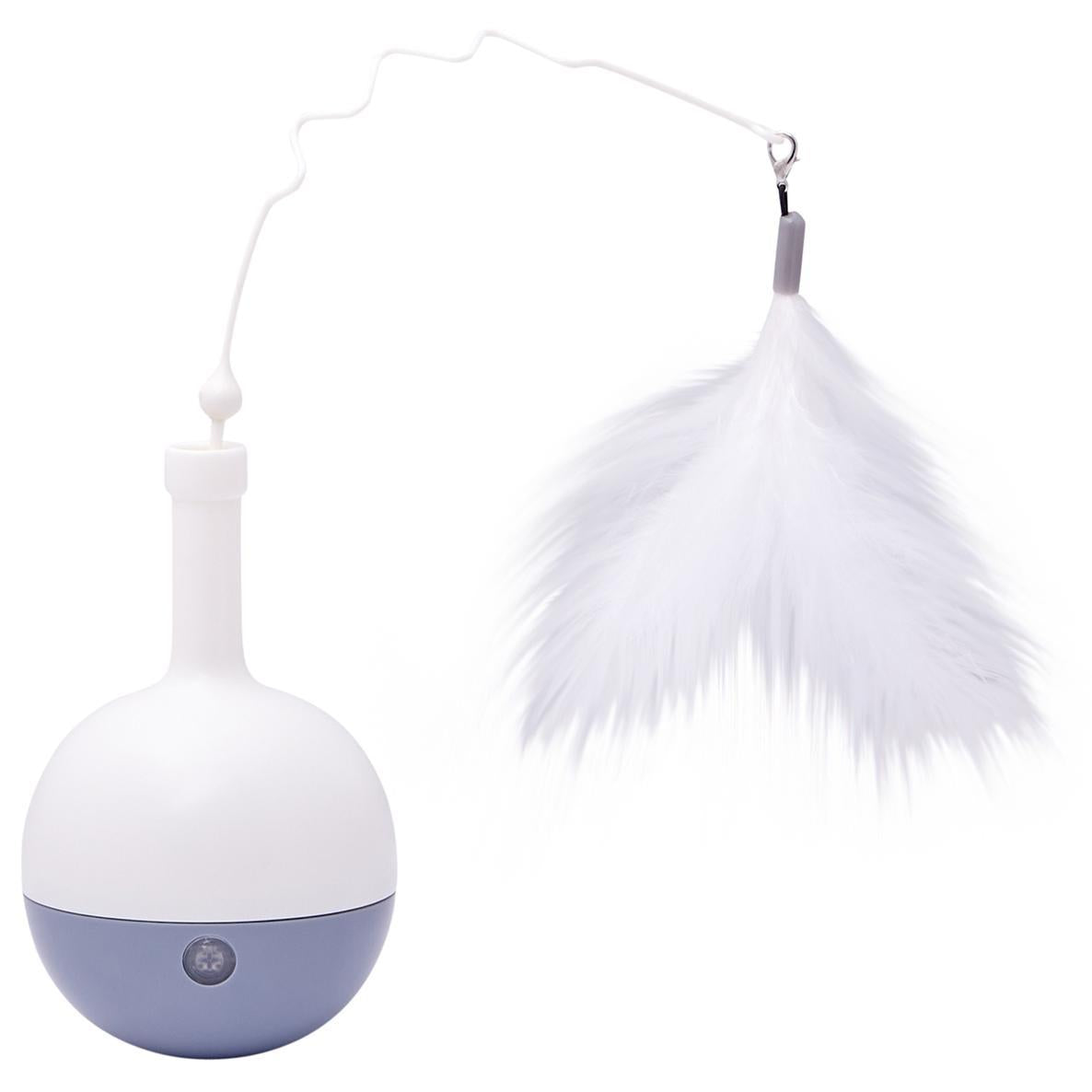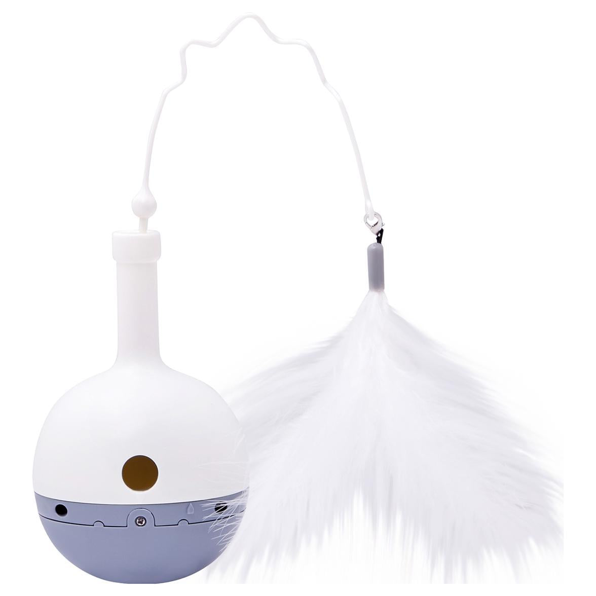The Buddy & Belle Treat Dispensing Tumbler Ball features a built-in sensor system, causing the ball to spin at the touch of a paw. Fill with treats, attach the feather teaser to entice your cat and watch the ball spin; dispensing whatever is inside. Extra enticing attachments sold seperately.