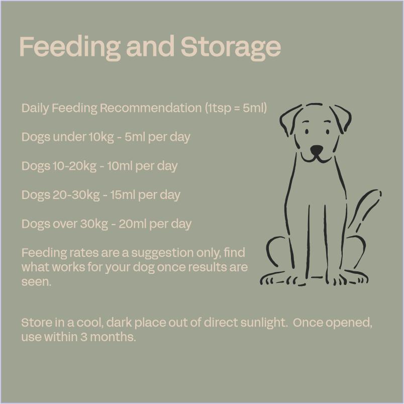 High levels of Omega 3 can help to stop itching and irritation caused by dry skin. Skin & Coat is an ideal supplement for dogs with allergies and poor coat condition, to bring back their sparkle and shine. This wonderful oil blend provides Omega 3, 6 and 9 Essential Fatty Acids for healthy skin, coat, joints and heart. Bring out your dog’s inner sparkle and let them shine