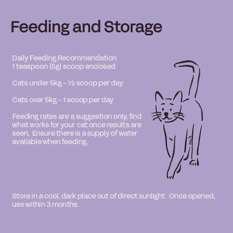 Formulated with a carefully selected blend of natural ingredients, including B vitamins, chamomile, magensium, L-tryptophan and L-theanine, Calm works on your cat’s nervous system without sedation. This supplement allows your cat to maintain their usual energy and personality, just with less anxiety and stress. It’s ideal for all breeds and sizes, ensuring every cat can enjoy the benefits of a calm, balanced state.