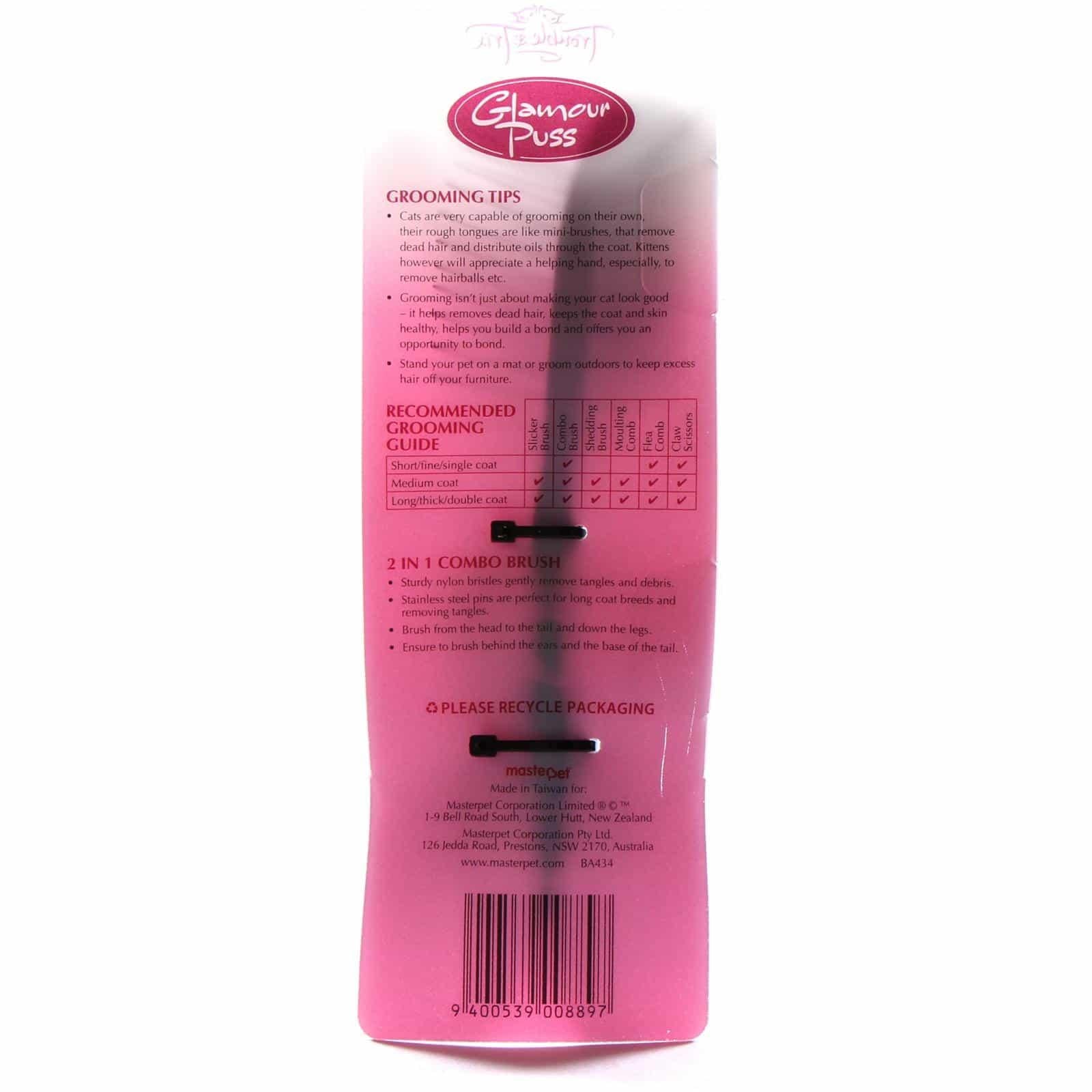 The Glamour Puss Combo brush is a great brush that can be used for day to day grooming or tangle removal. For best results brush from the head to the tail and down the legs.