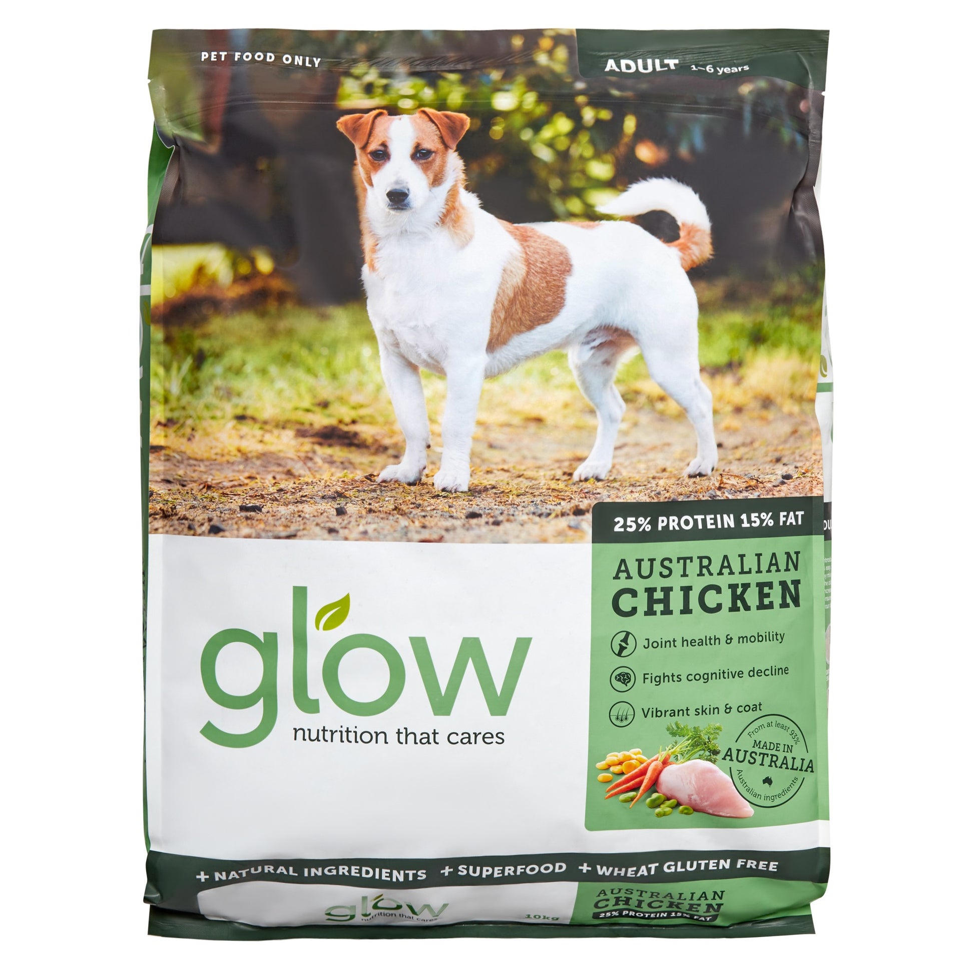 Glow Adult Dog Food Chicken is formulated with Australian sourced, protein rich chicken along with carrots for healthy eyesight, lupins to assist with a low GI diet and green beans for a wholesome source of vegetable protein.