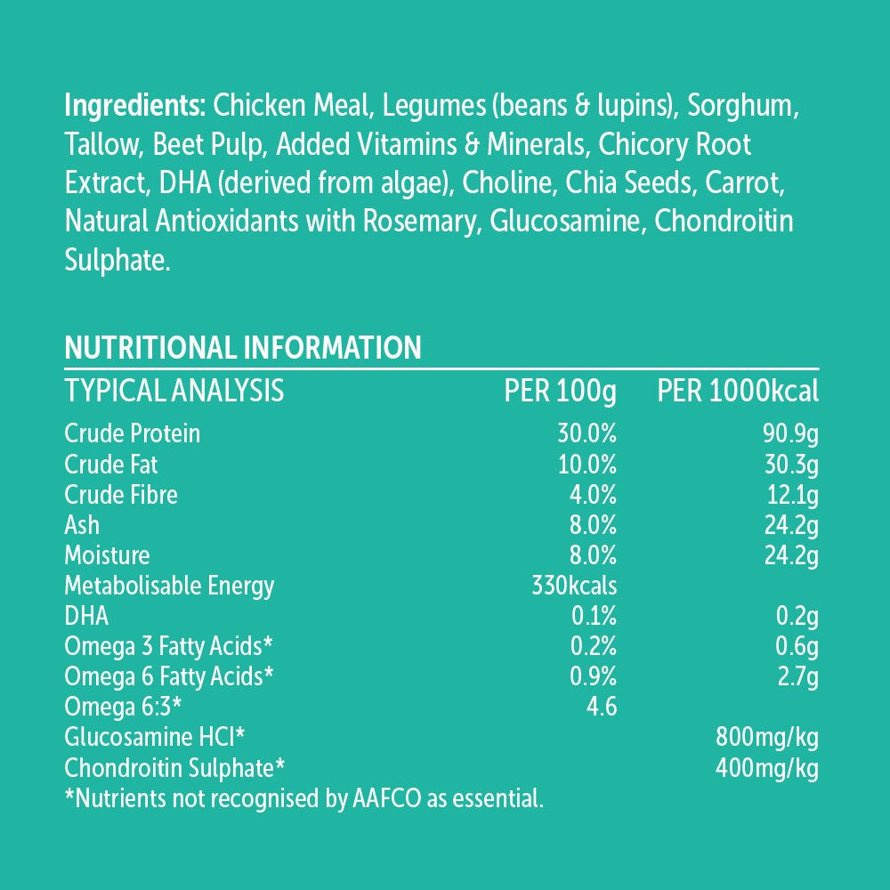 Glow Large Breed Adult Chicken is formulated to specifically support the needs of large breed adult dogs, aged 1-6 years old. Protein rich chicken along with chia seeds for skin and coat health, rosemary for its source of antioxidants and immunity support and carrots for healthy eyesight.