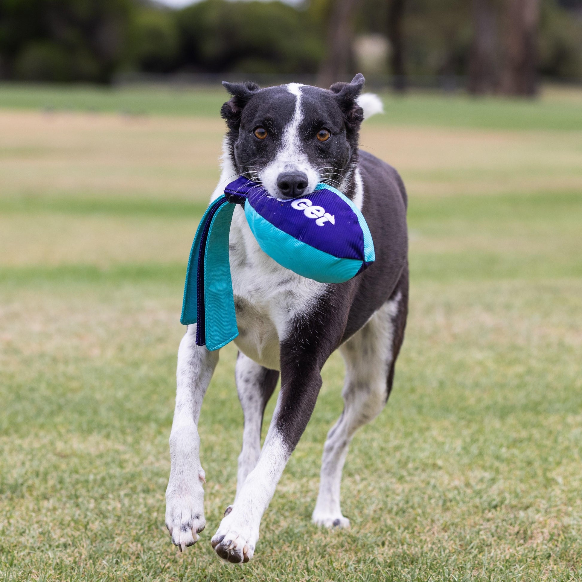 The Go Get Rocket Ball is lightweight and water-resistant making it ideal for playing fetch and tug in all weather conditions. With a study design and added squeaker the Go Get Rocket ball delivers endless hours of fun.