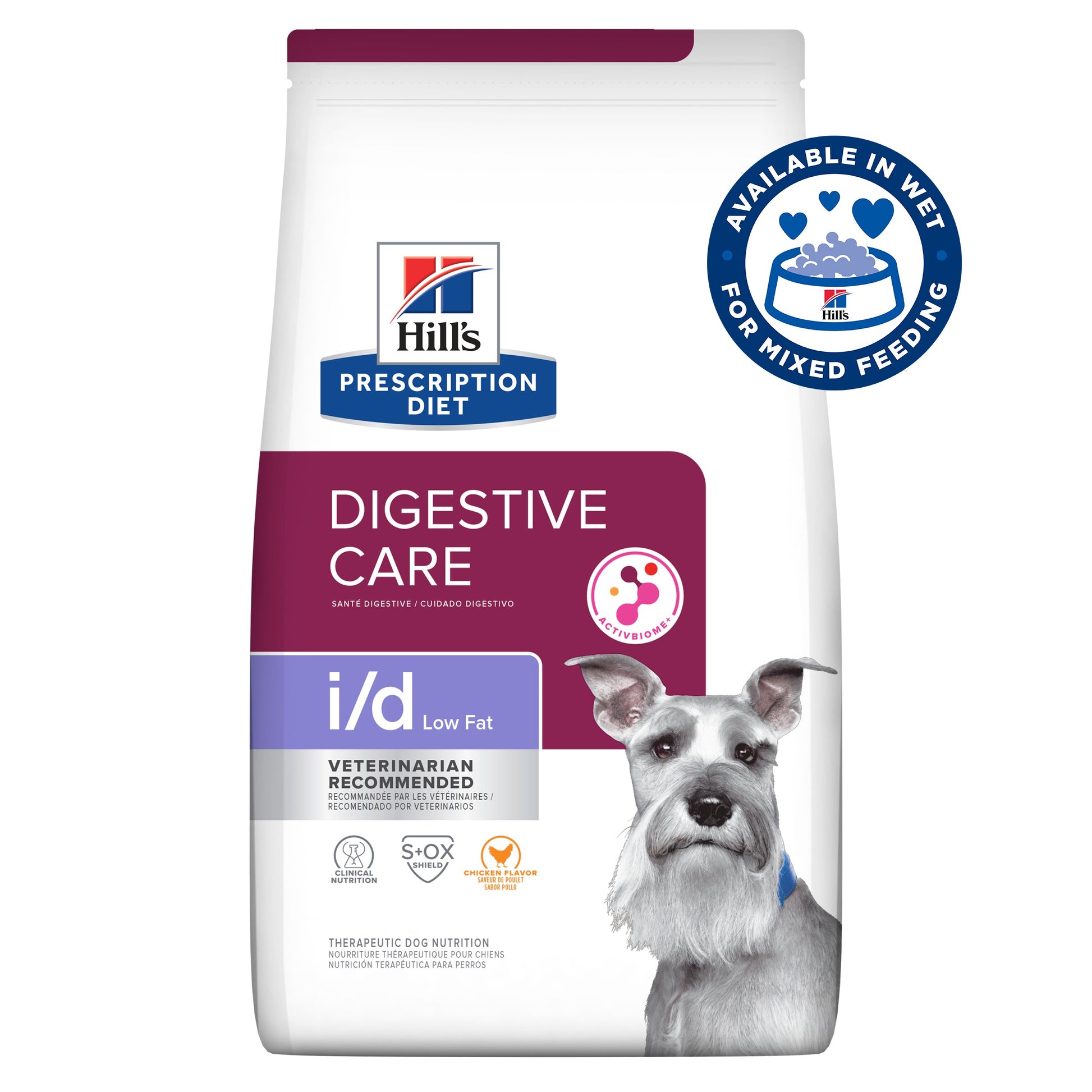 Hill Prescription Diet i/d Low Fat Dry Dog Food is highly digestible low fat nutrition shown to lower blood fat level to help settle digestive upsets.