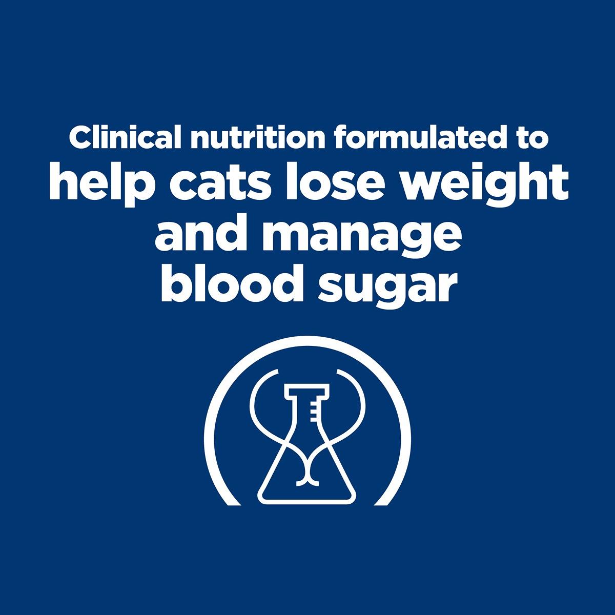 Glucose/Weight Management 59% of the cat population is overweight (1). Even a little extra weight can lead to serious health problems. Extra weight reduces play time, impacts mobility and affects the general health of your cat. Factors contributing to weight gain include age, lack of exercise and overfeeding. Along with frequent physical exercise, choosing the right food plays a very important role in helping cats reach their proper weight. Hill's nutritionists & veterinarians developed Prescription Diet m/d GlucoSupport clinical nutrition to help support your cat's glucose and weight management. In fact, m/d GlucoSupport is clinically tested nutrition to manage glucose and weight. (1) Pet Obesity Prevention 2018 Study
