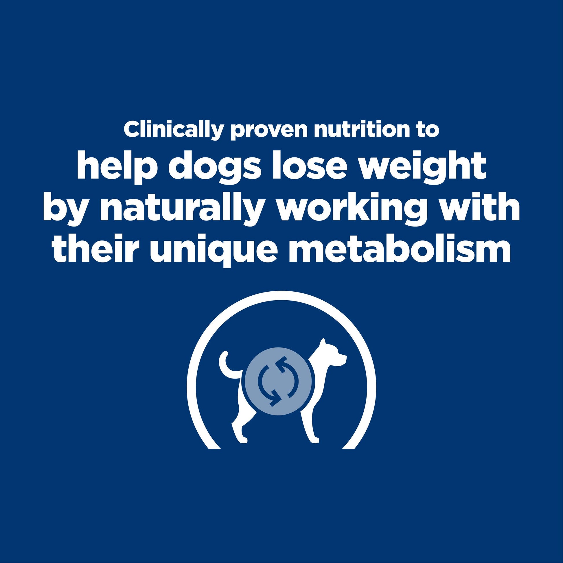 Hill's nutritionists & veterinarians developed Prescription Diet Metabolic clinical nutrition specially formulated to help dogs lose weight by naturally working with their unique metabolism. This food helps dogs metabolise fat and maintain lean muscle to keep them playful & active. Its unique blend of fibre helps keep dogs feeling full and reduces food hunger between meals. In fact, 96% of dogs lost weight at home in 2 months when fed the nutrition of Metabolic. This canned food is made with chicken and has a ground texture with an irresistible taste that your dog will love.