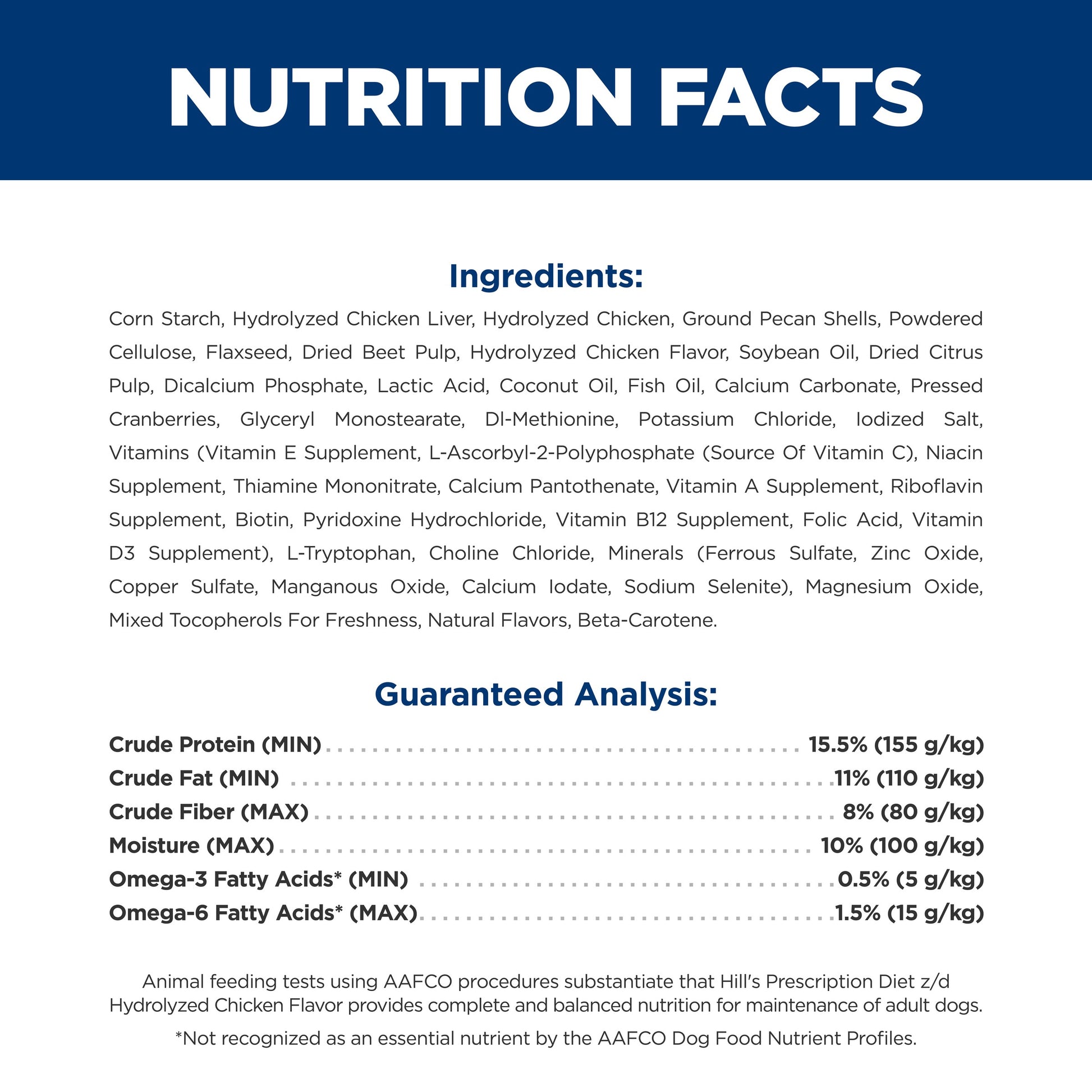 Prescription Diet z/d is clinical nutrition proven to help avoid skin and digestive signs of adverse food reactions in dogs. It made in the USA with global ingredients you can trust, and was developed by Hill nutritionists and veterinarians. This nutrition includes natural fibre to help normalise stool. Formulated without additives known to cause food allergies. Also promotes a urinary environment that reduces the risk of developing struvite and calcium oxalate crystals. Please consult your veterinarian for further information on how Prescription Diet foods can help your dog continue to enjoy a happy and active life.