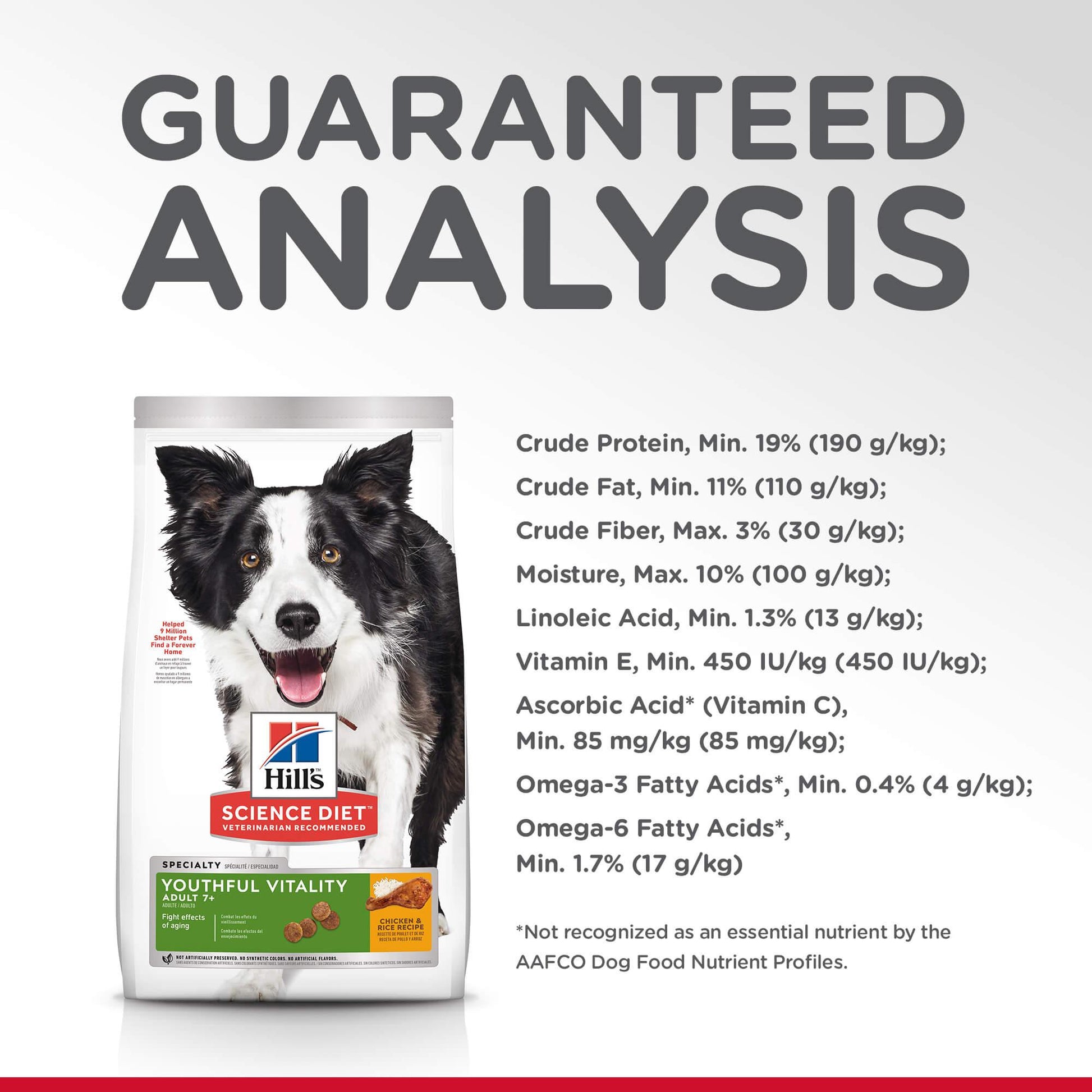Hill's Science Diet Senior Vitality dog food provides precisely balanced nutrition to fight effects of aging in your Adult 7+ dog.