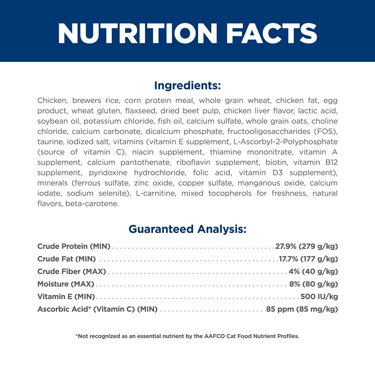Hill's Science Diet Adult 11+ dry cat food supports healthy aging during the golden years. Contains a special ingredient blend to help keep older cats agile, more alert & interactive.