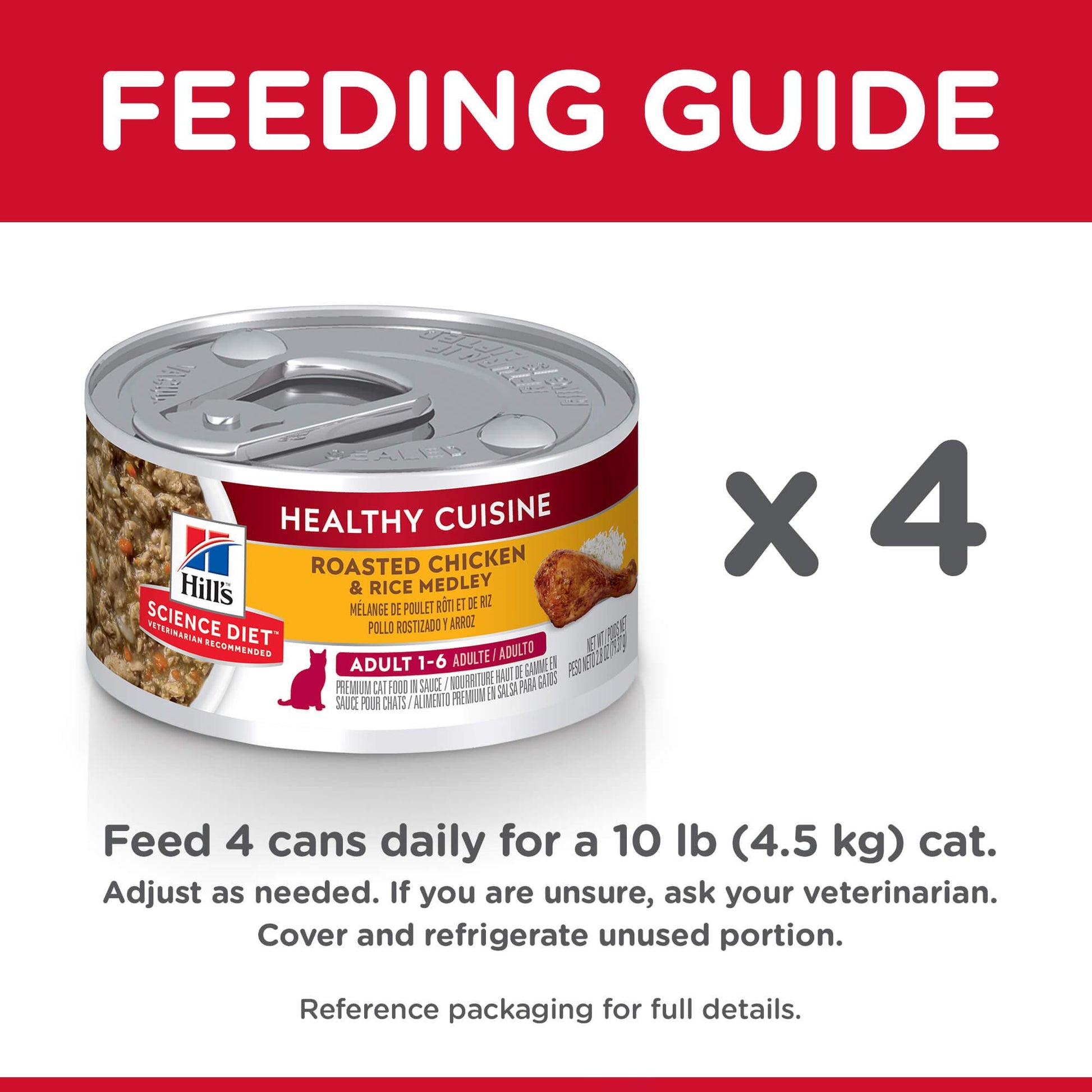 Hill's Science Diet Adult Healthy Cuisine Roasted Chicken & Rice Medley combines the delicious flavours of roasted chicken and rice in a mouthwatering sauce - the perfect balance of taste and nutrition for your cat.