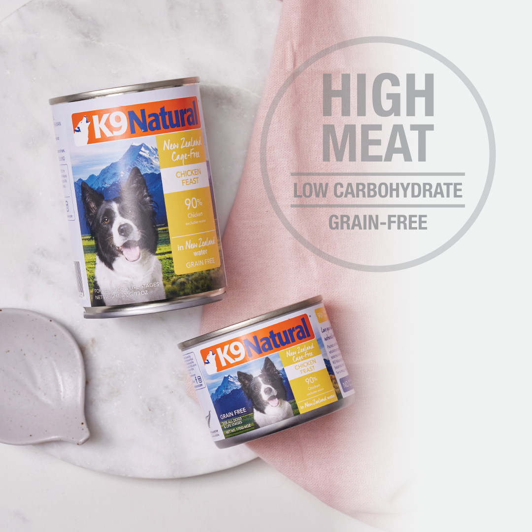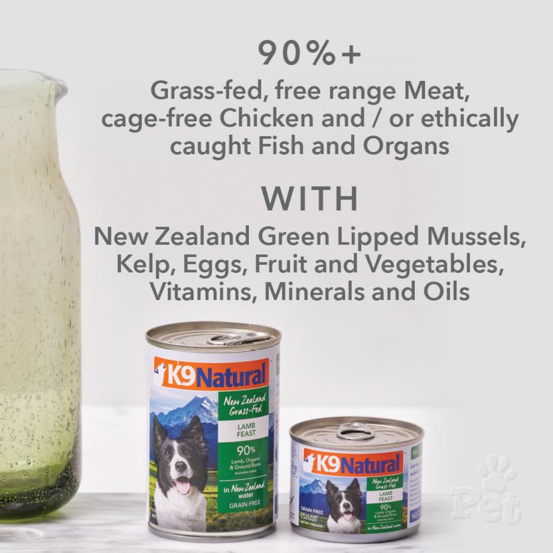 K9 Natural premium canned dog food contains all the goodness of our existing product ranges in a convenient, ready to use can. Our cans are FREE from all gelling agents, the only thing we add is Natural Fresh New Zealand Water. Simply pop the top and drop the contents out with ease and no mess.