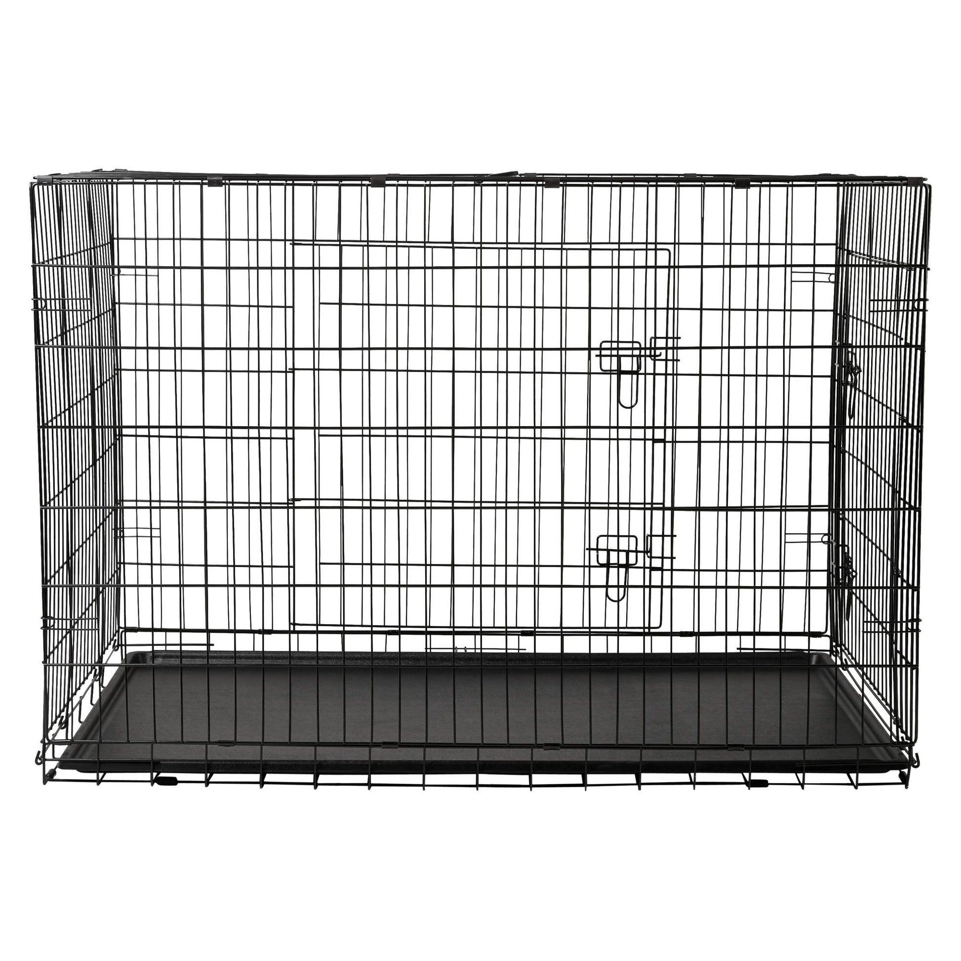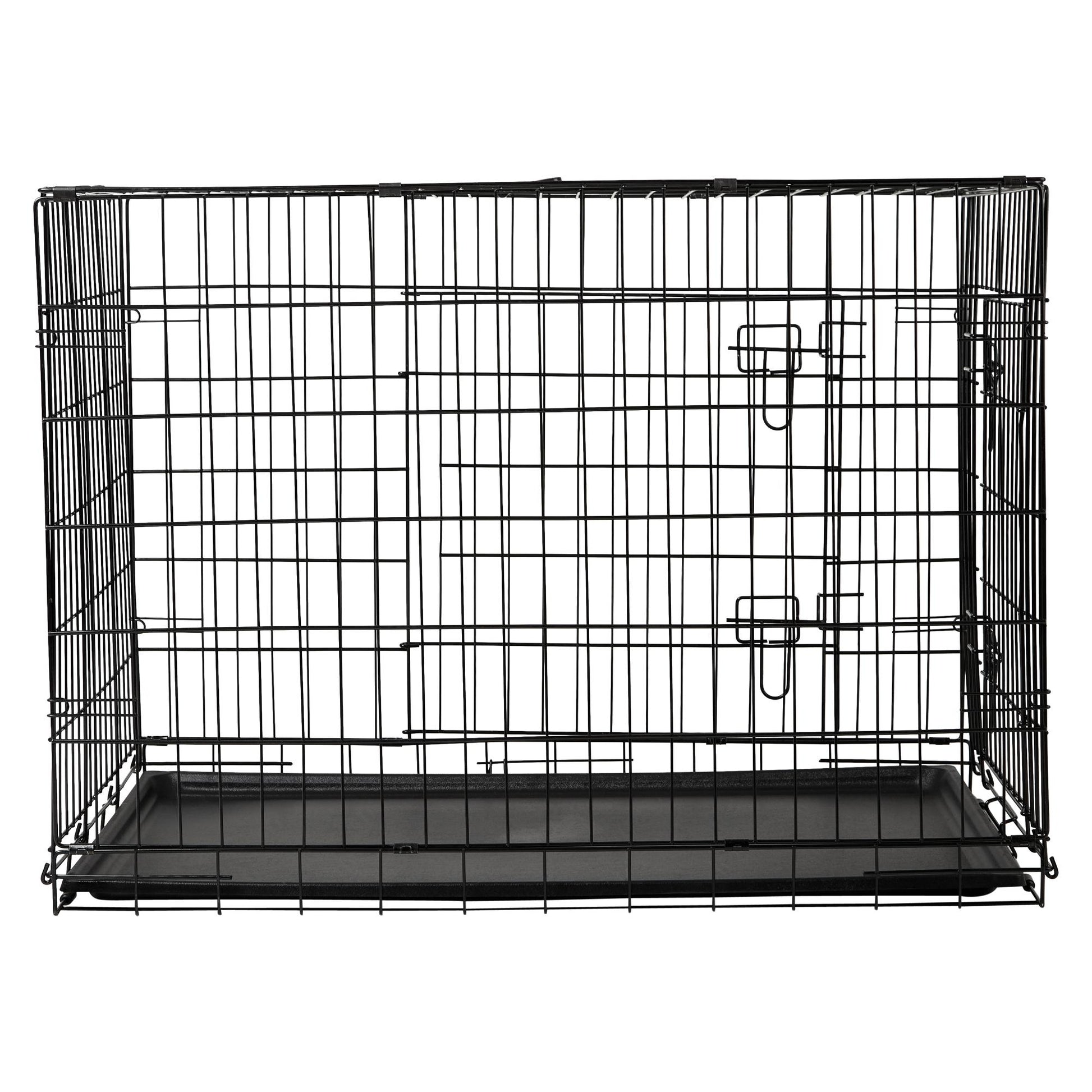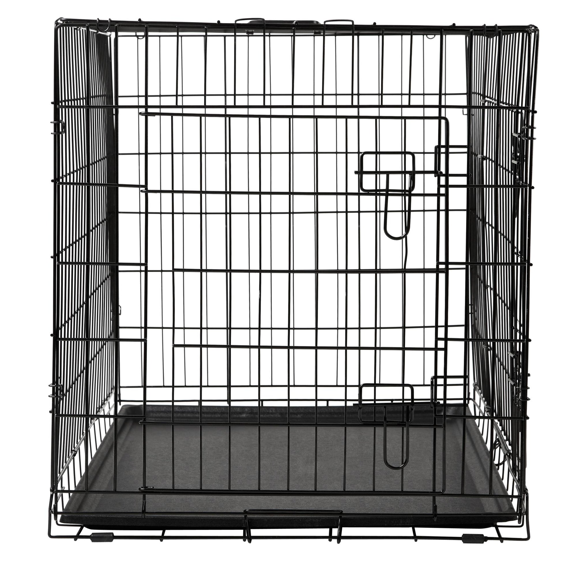 Give your pet a personal space that is cosy and safe with the Lexi & Me Dog Crate with Tray. Perfect for sleeping in, travelling or relaxing, it features two-doors, one on the side and one on the front, for easy access, double slide bolts for security and rubber feet to protect floors and surface. You don't need tools to put it together! Easily folds down flat in seconds for travel and storage.