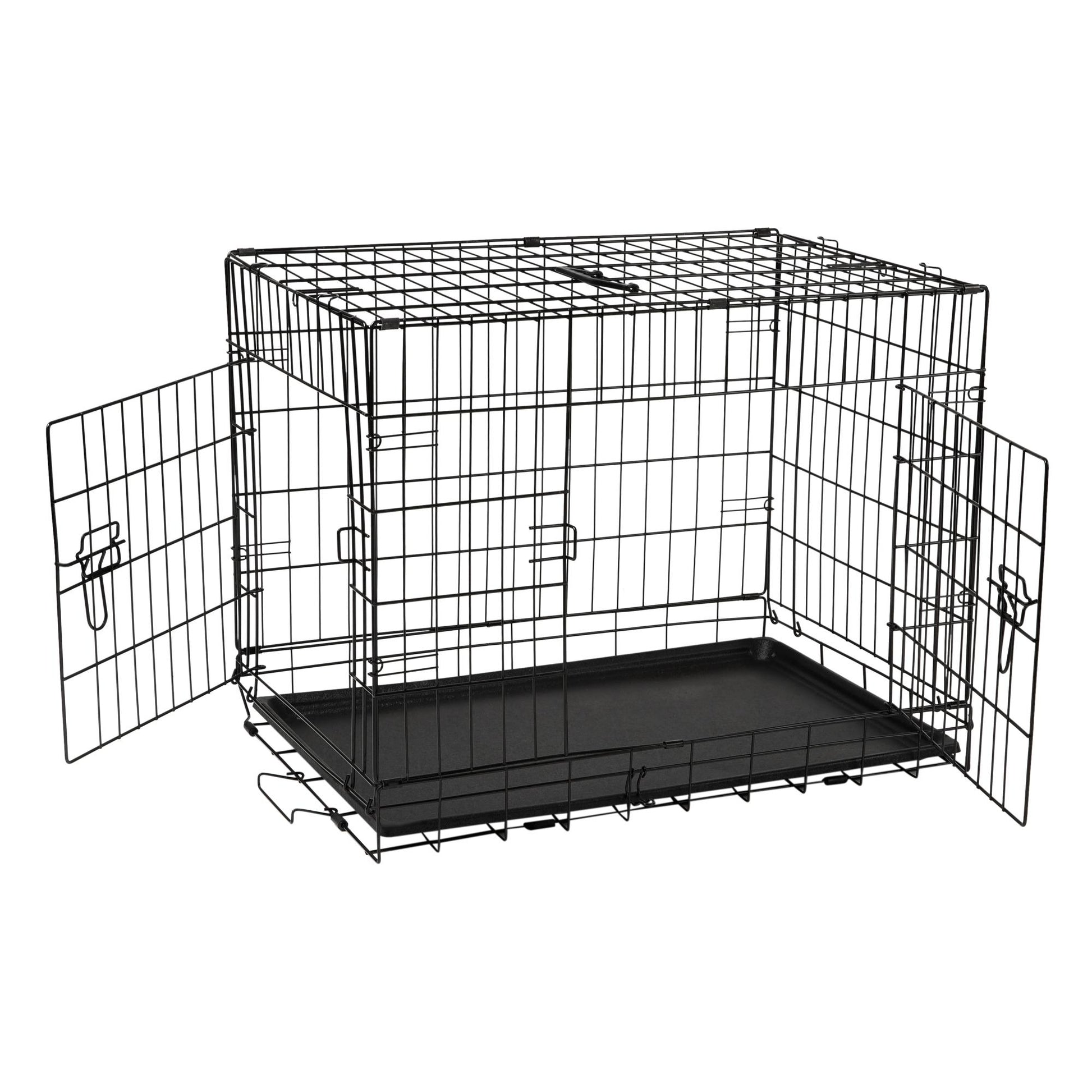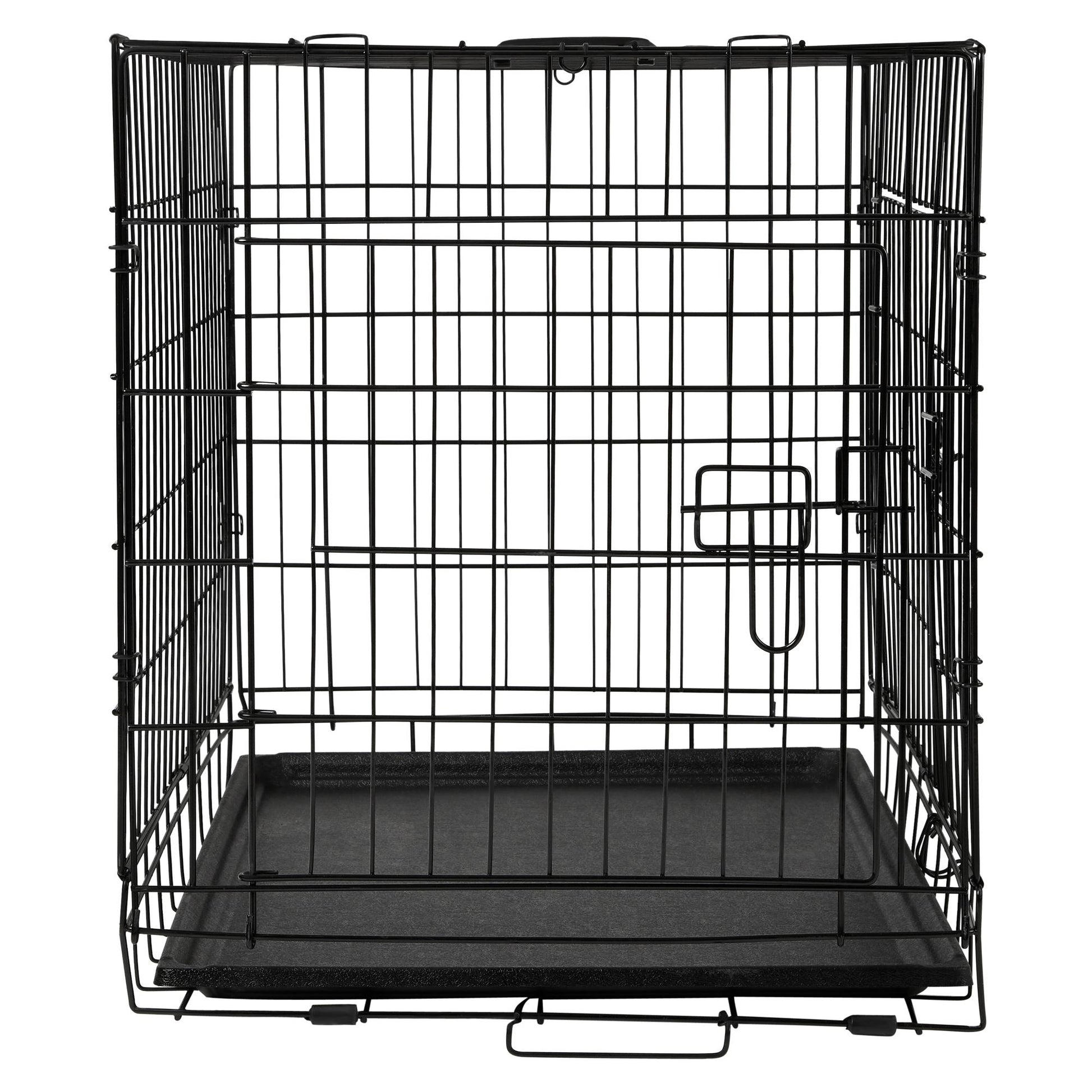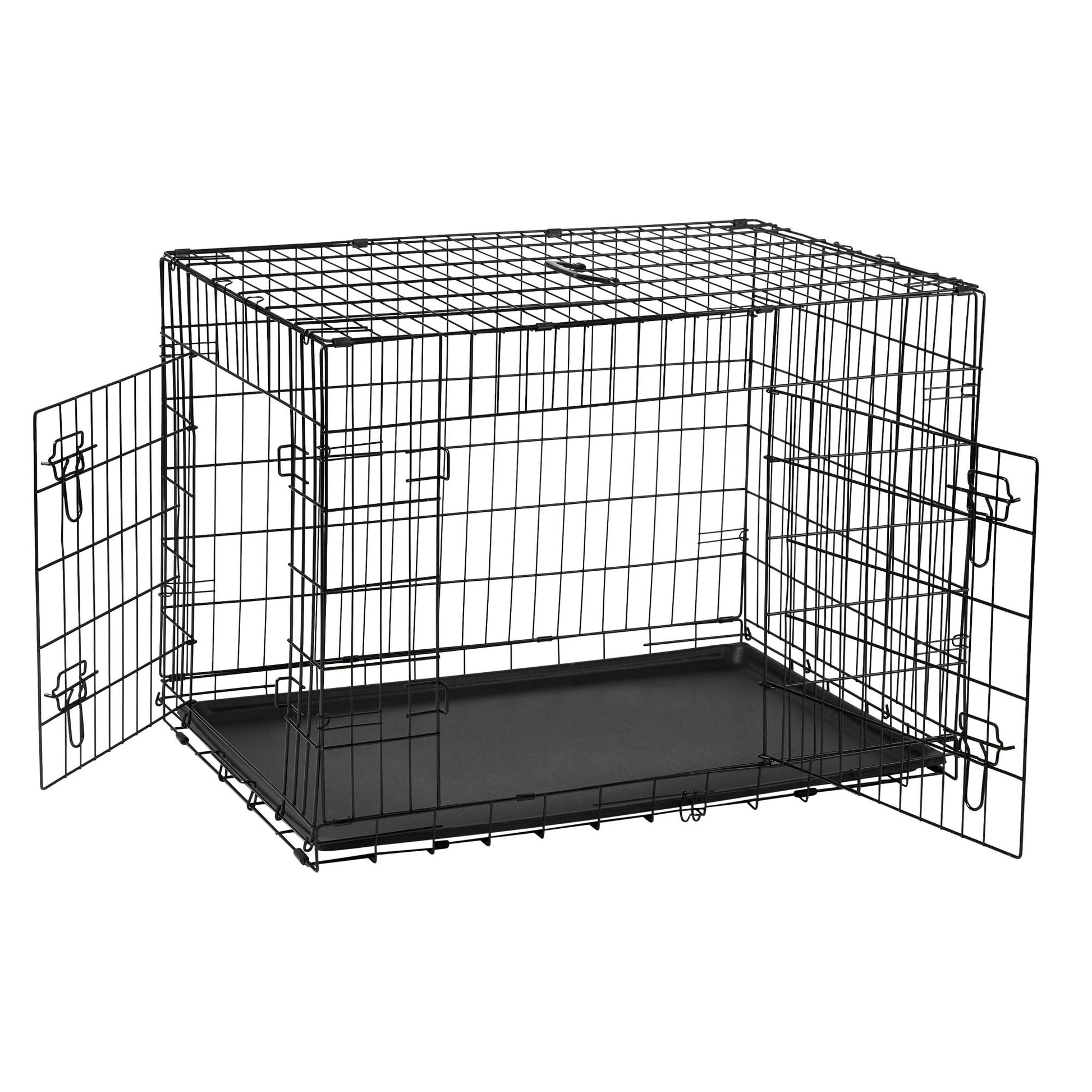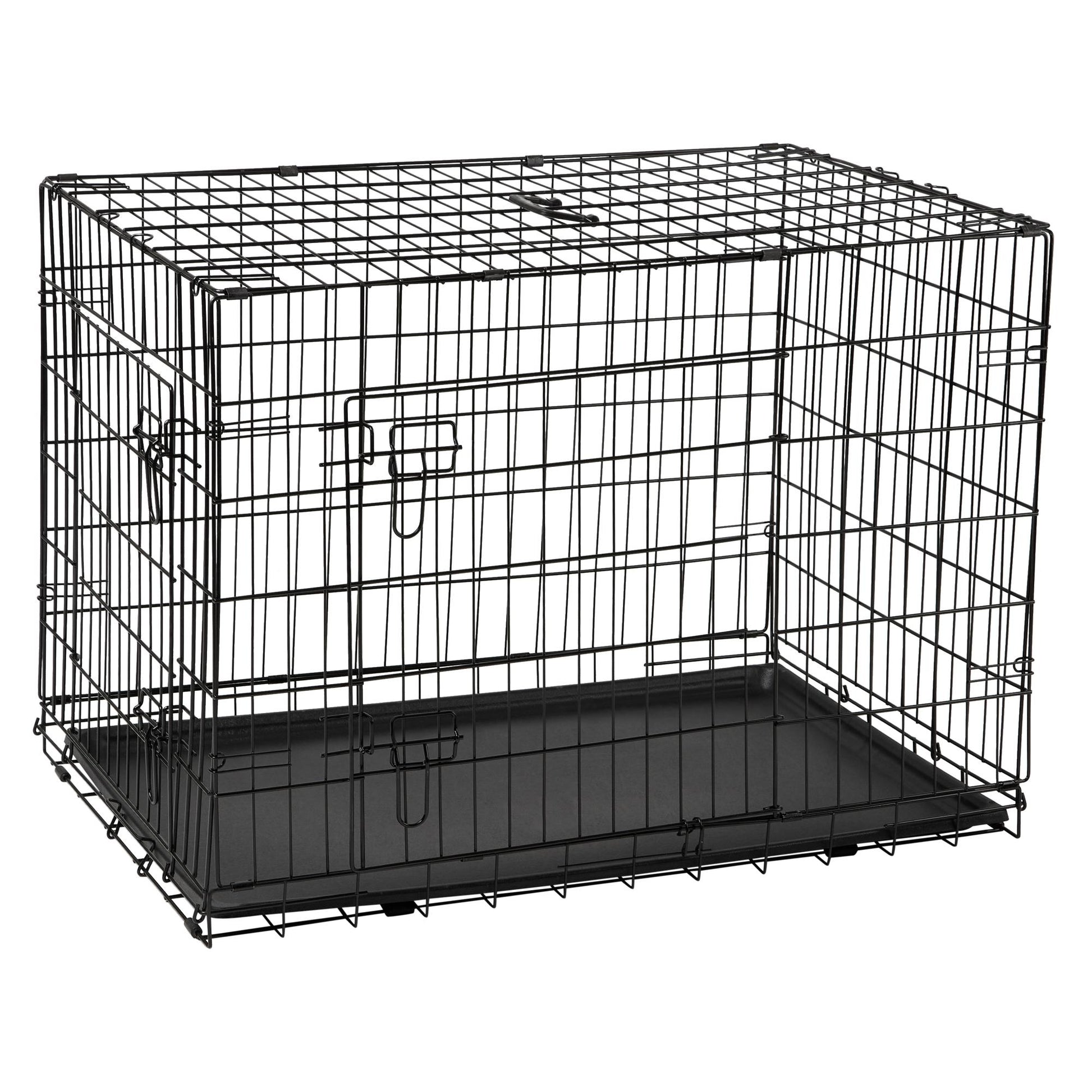 Give your pet a personal space that is cosy and safe with the Lexi & Me Dog Crate with Tray. Perfect for sleeping in, travelling or relaxing, it features two-doors, one on the side and one on the front, for easy access, double slide bolts for security and rubber feet to protect floors and surface. You don't need tools to put it together! Easily folds down flat in seconds for travel and storage.