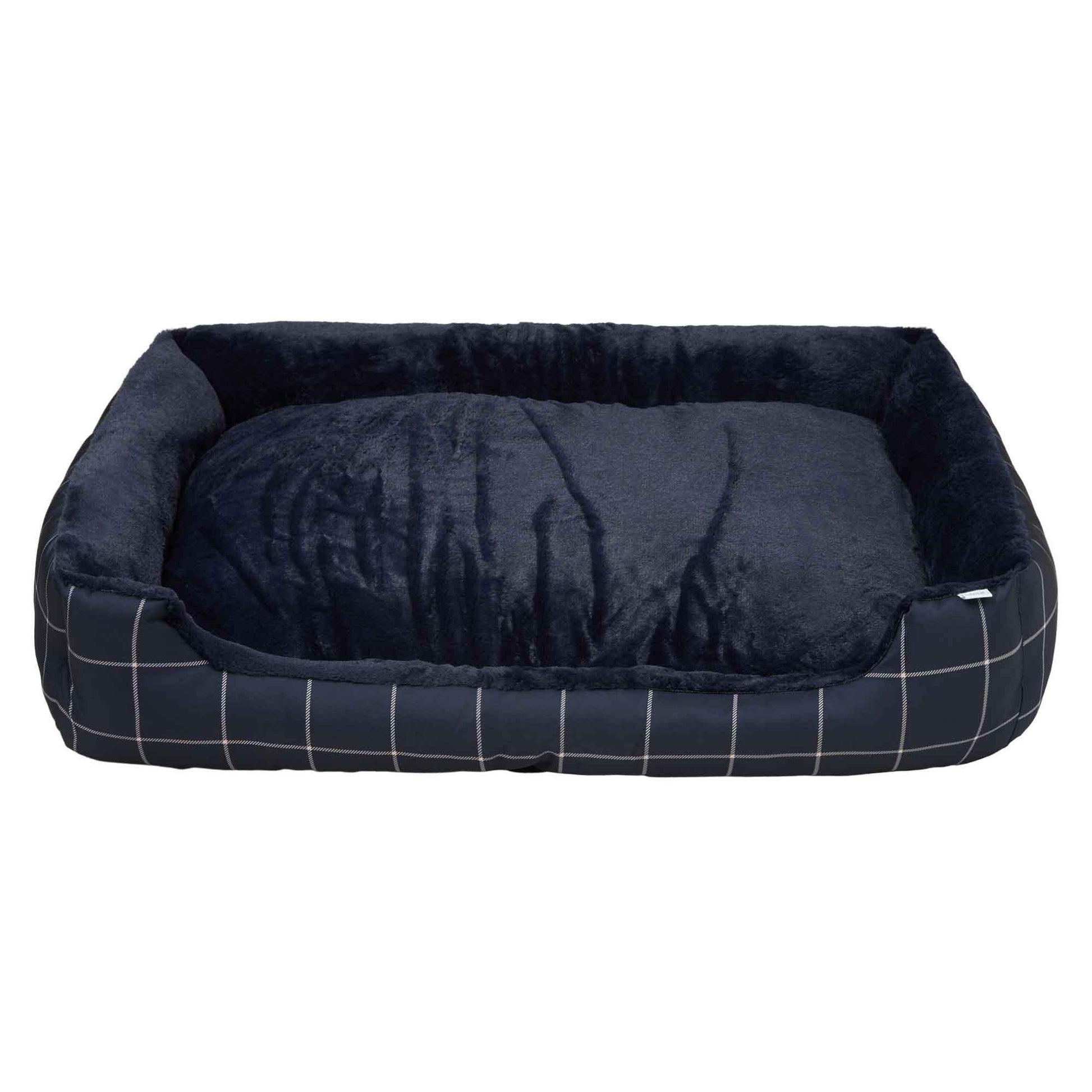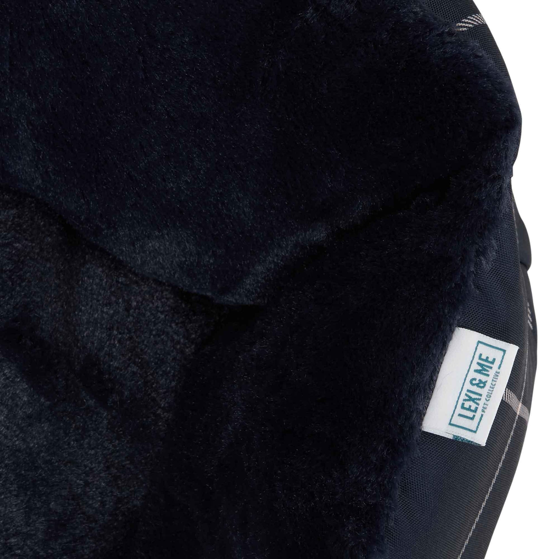 Stylish and comfortable, every pet deserves to rest in the plush depths of the Lexi & Me Bolster Bed! Featuring the classic Navy Check print, this bed boasts comfort with wraparound bolsters and a fluffy plush mat that is soft to touch for a perfect space to rest. Filled with 100% post-consumer recycled polyester, making it a more sustainable choice. The bed also includes a non-slip base for added comfort and security.