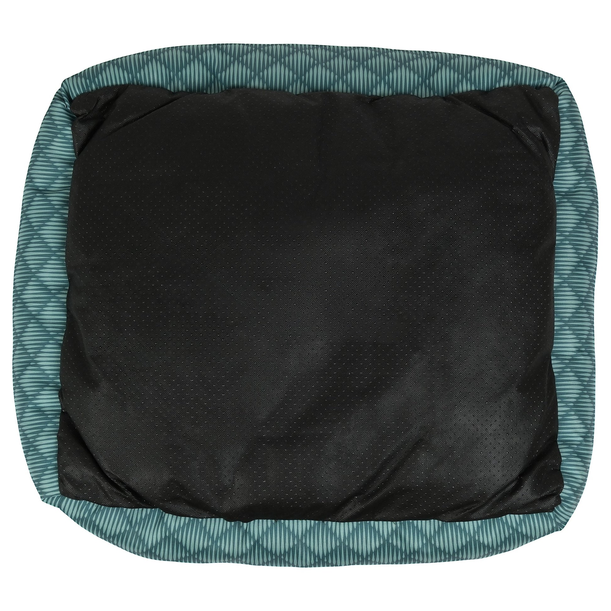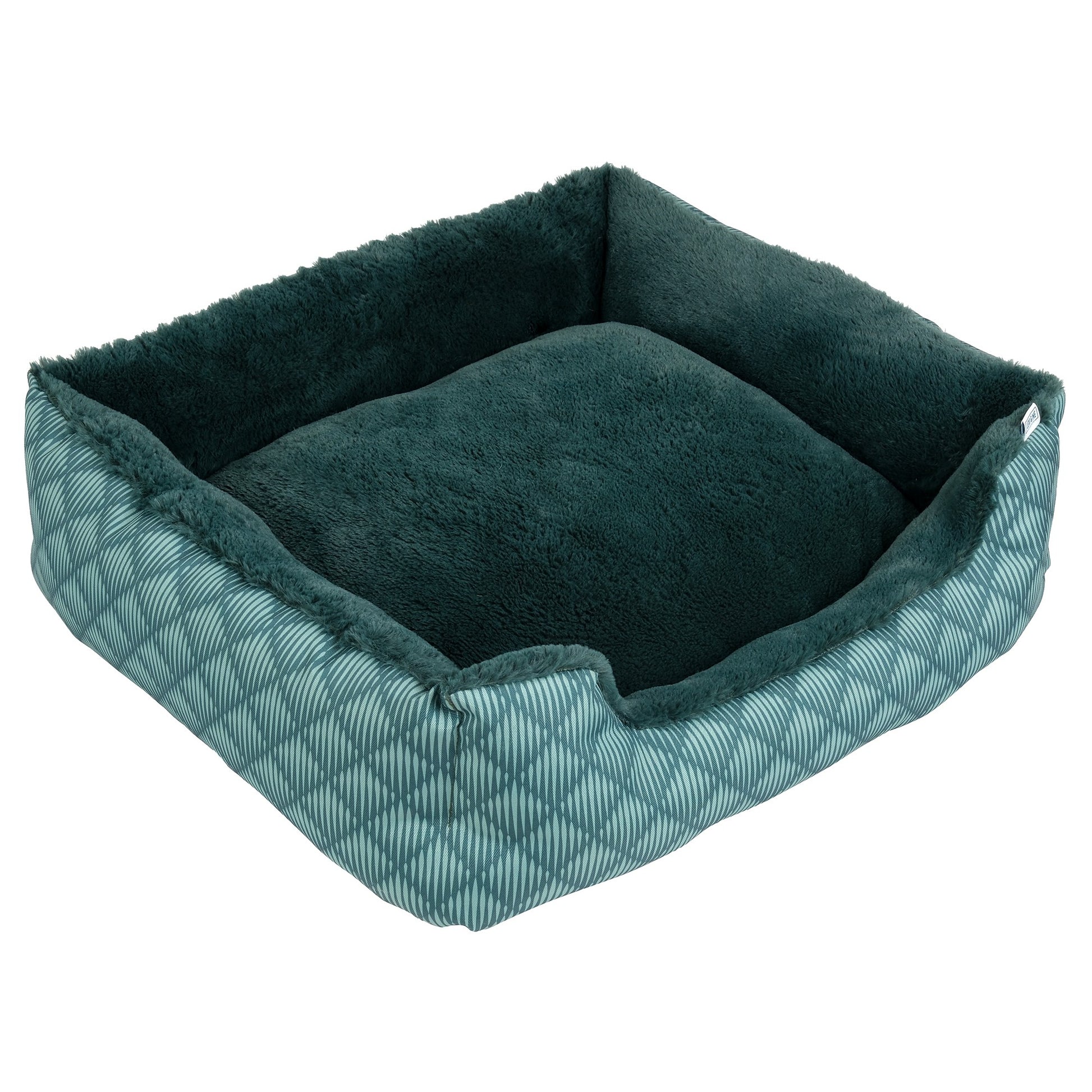 The Lexi & Me Bolster Bed Green Quilt provides your pet with a cosy lounging spot featuring a stylish quilt print. The lush green plush it creates a comfortable haven for your furry friend to relax and feel safe. The raised edges offer a secure space for their head to rest, while the entrance allows for easy access. Filled with 100% post-consumer recycled polyester and featuring a non-slip base, this bed ensures stability and comfort for your pet.