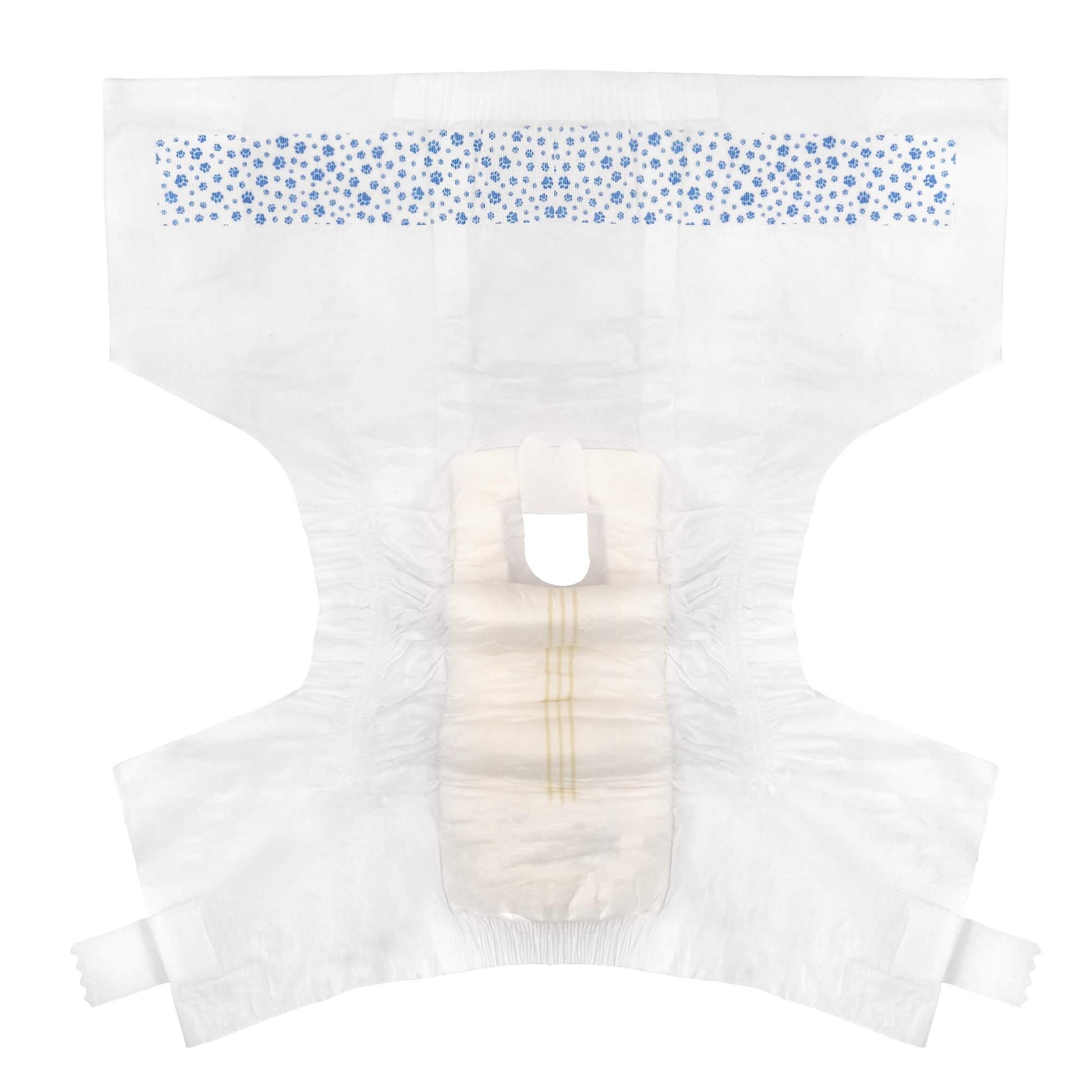 1. Slip the diaper over your dog's tail with the tabs underneath and the padding facing inward