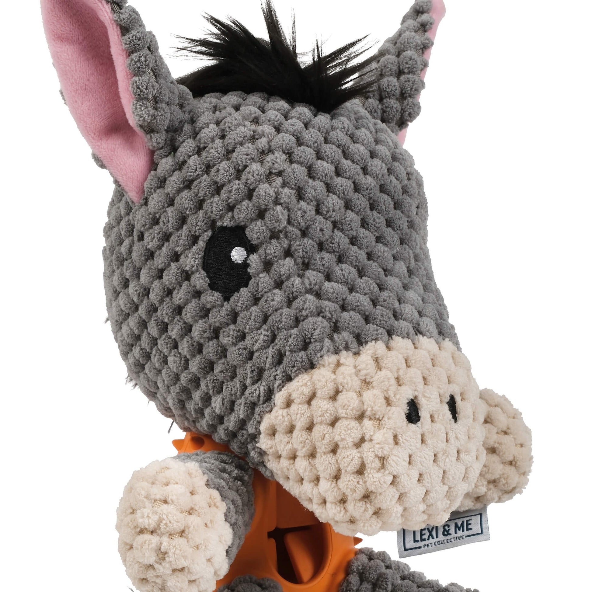 This dual textured donkey squeaks, crinkles and the rubber body is a positive outlet to satisfy their need to chew. Place dry treats in the rubber centre to create a rewarding activity for your dog.