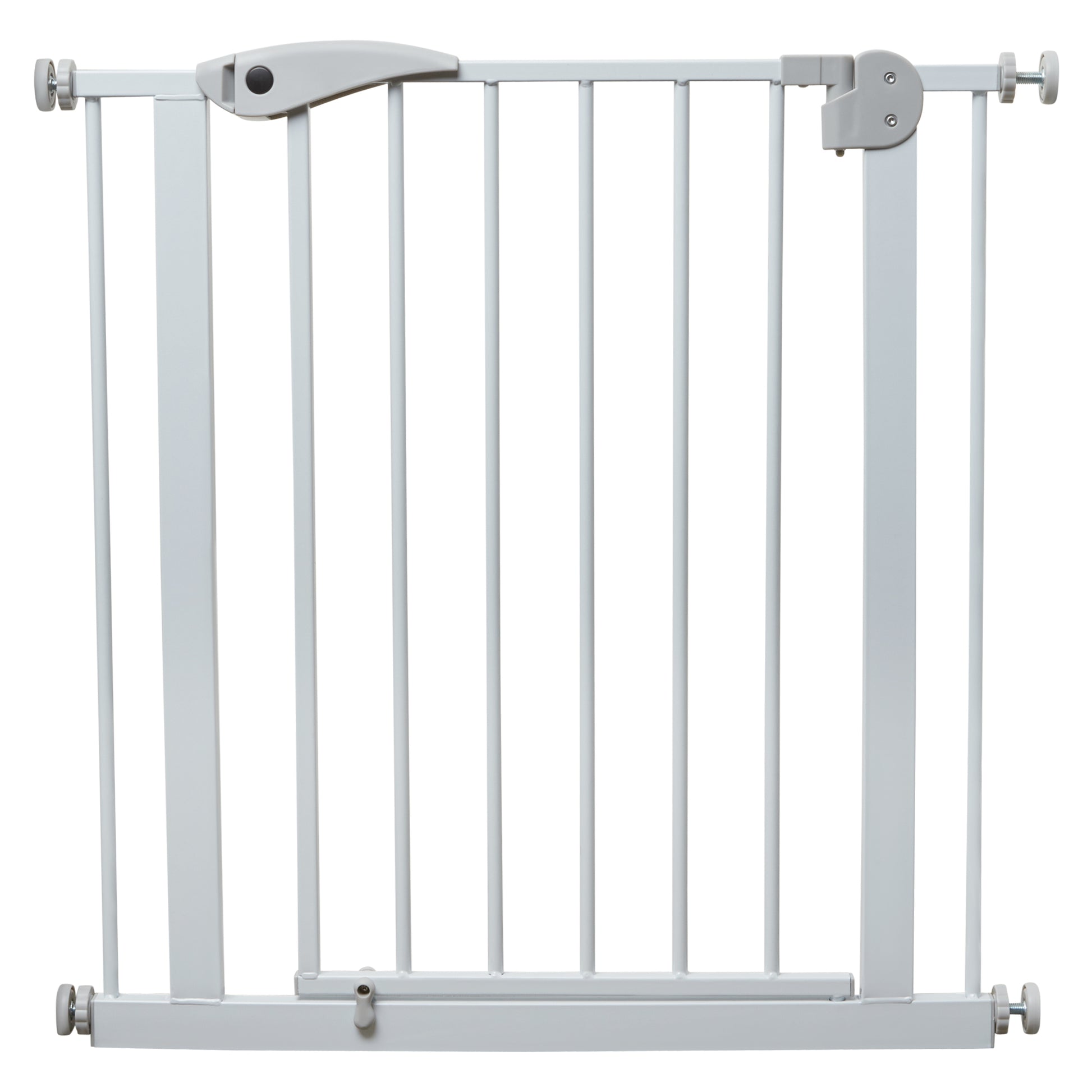 Turn any room in your home into a safe zone for your pet with the Lexi & Me Pet Gate. The wall-safe pressure mounts keep your gate tightly and securely in place with no need for screws - perfect for renters. The gate opens easily using one hand with its grip handle, swings in either direction and when closed, locks automatically for your convenience. Comes with extension parts to suit wider doors or entrances.