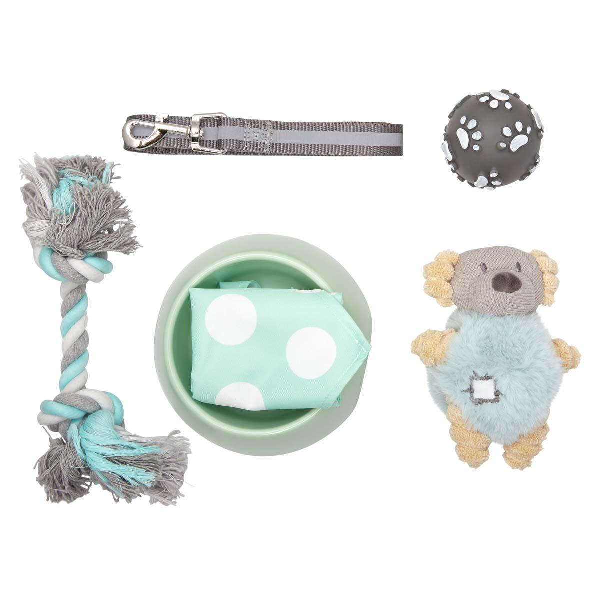 Welcome a new addition to your family with the Lexi & Me Puppy Starter Kit. With all the accessories you need to get your puppy settled in, this puppy starter kit includes a lead, a bandana, a rope toy, a squeaker ball, a plush toy teddy bear with squeaker and a 250ml melamine bowl. Gift boxed and ready to go, perfect for your own pet or for spoiling another.