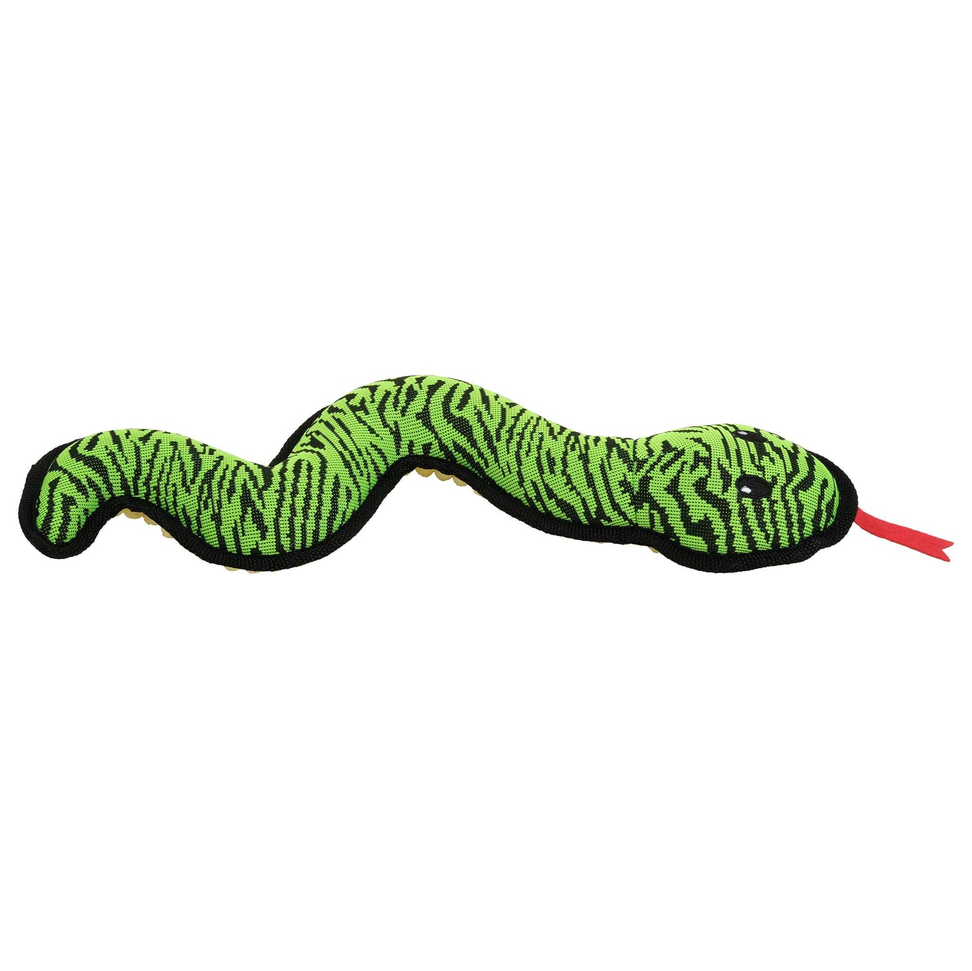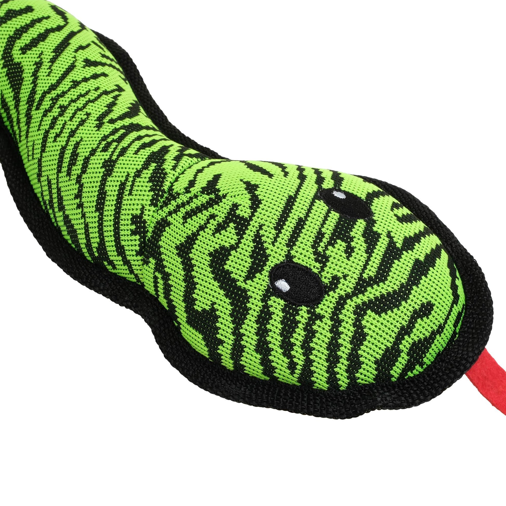 An engaging dog toy made from a durable knit for rougher play. The squeaker, crinkle material & multiple textures will keep them entertained.