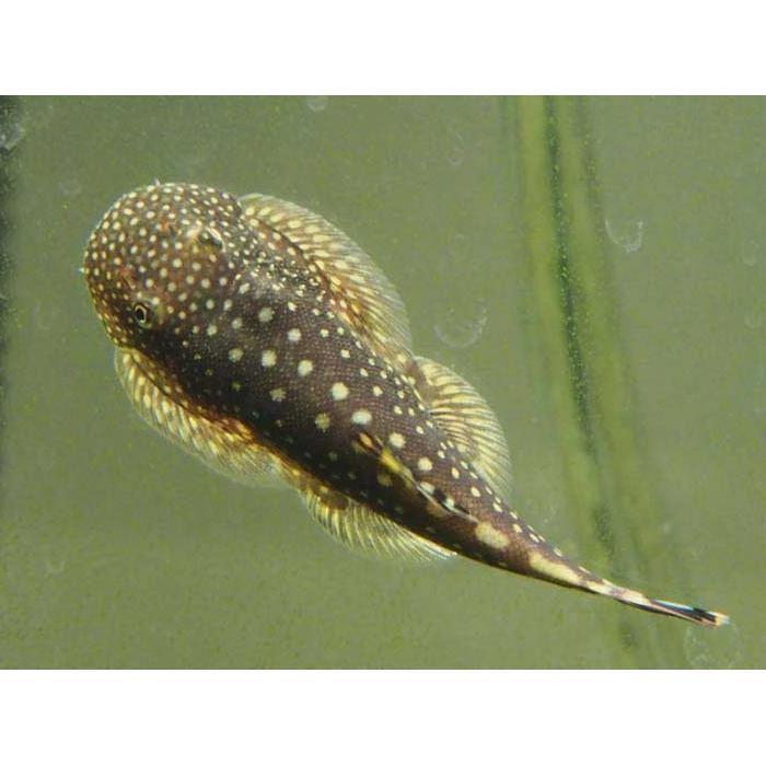 The Borneo Sucker fish is a curious fish that due to its unique features, it can adapt to fast-flowing streams of water. Their flattened body-shape helps the sucker fish navigate or stay in place in strong flowing water with minimal effort. It is visually appealing due to its patturn and brightly colored specs.