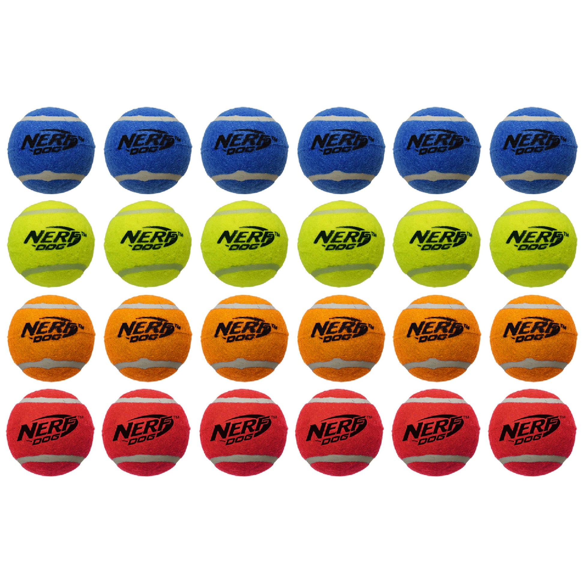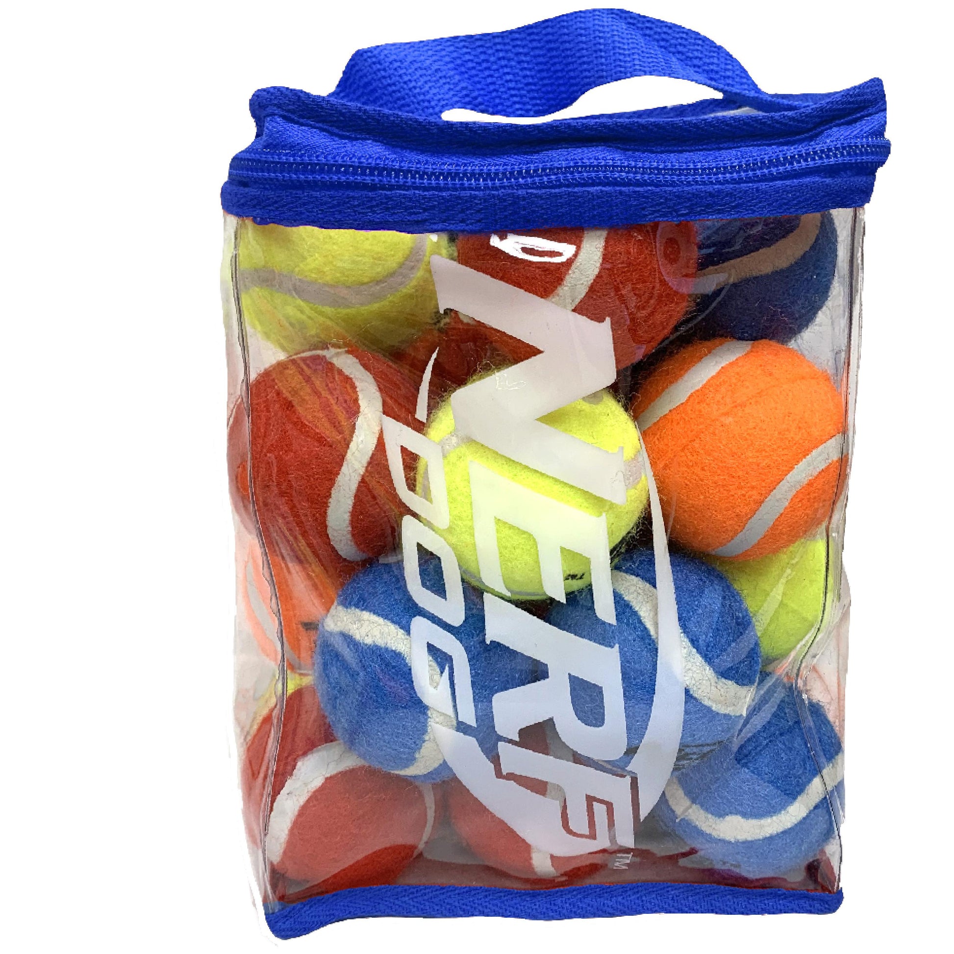 The NERF DOG 5.08cm Multicolored NON-SQUEAK Tennis Ball 24-Gift Bag will entertain your dog for hours on end! Filled with colorful tennis balls for endless games of fetch, the durable felt body can stand up to extended chewing. He'll be ready for an exciting game of fetch instantly. This gift set is great for families with multiple dogs. Whether it's playing outdoors in the park or playing inside, you are sure to have a good time with your furry friend. This gift bag was specifically designed to be both appealing yet safe for your pet.
