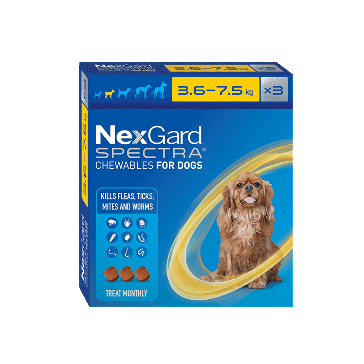 NexGard Spectra is an innovative parasite prevention, control, and treatment in one single chew. With two active ingredients, Afoxolaner and Milbemycin Oxime, combined together, this tablet treats not just fleas and ticks but also internal parasites such as roundworms, hookworms, whipworms, and heartworms. It can be bothersome to see your dogs skin scraping and suffering from skin infestations. If you want to get rid of these nasties free yourself from worry, treat them right away with NexGard Spectra.
