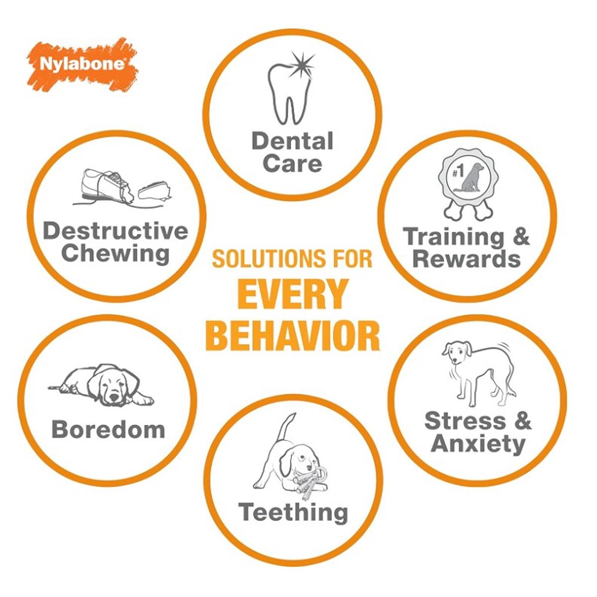 Help your teething puppy learn positive chewing habits from the start with our Just for Puppies Dental Bone! Designed for tiny pups, this soft dog chew toy encourages nondestructive chewing routines while satisfying the natural urge to chew. The nubs on this chicken dental chew toy help clean teeth and prevent plaque and tartar, giving your dog a brighter, healthier smile! Go ahead and throw your puppy a Nylabone!