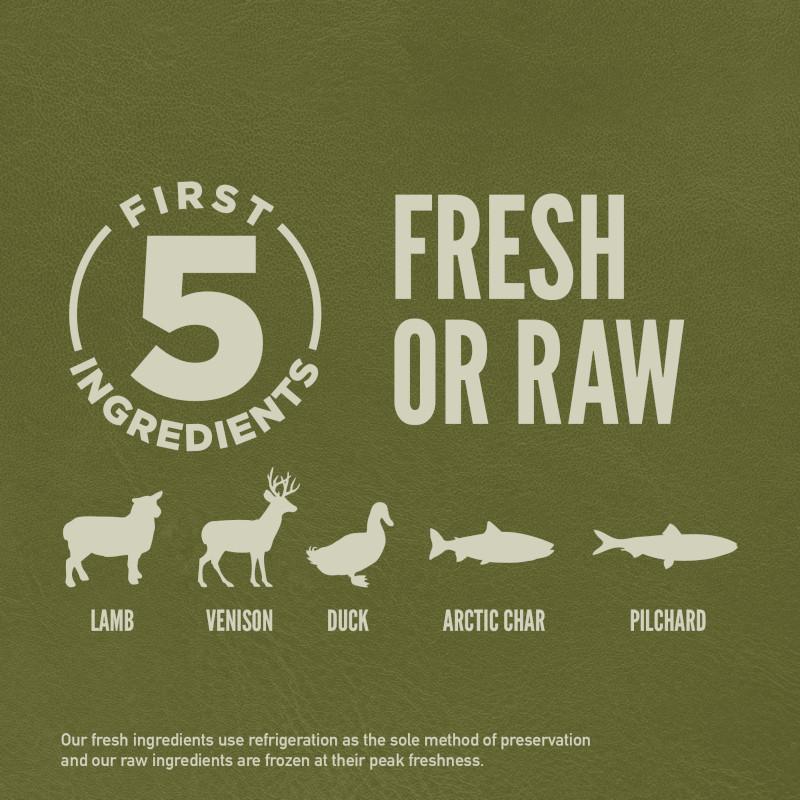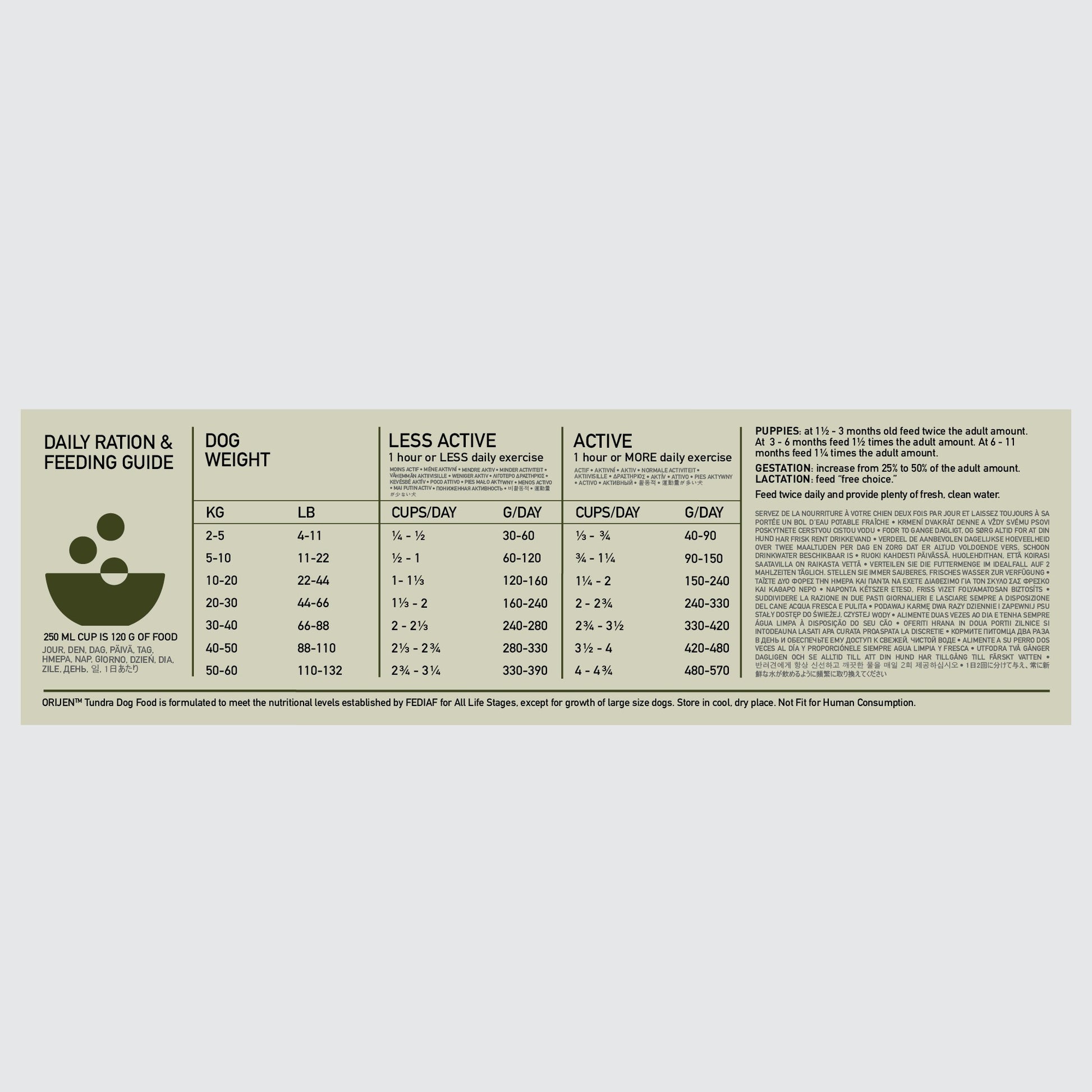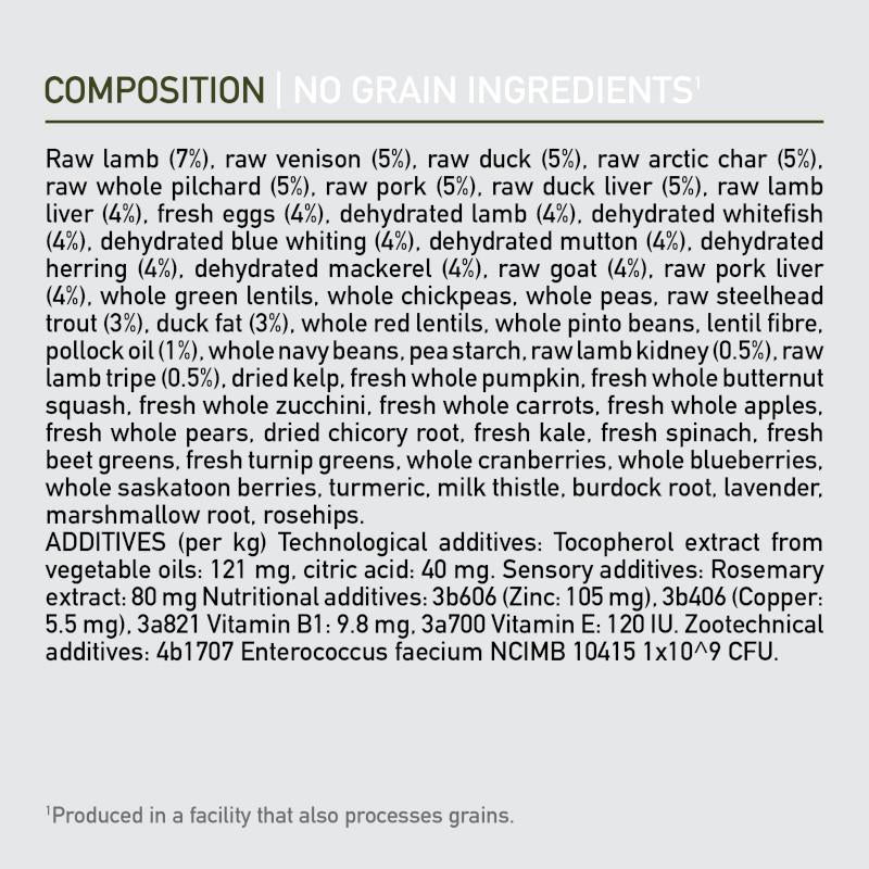 ORIJEN™ Tundra provides your dog with peak nourishment from a variety of unique protein sources. Crafted with an exceptional blend of raw lamb, duck, venison, fish, and more, this recipe is formulated to meet the evolutionary needs of your carnivorous canine. With 85% high-quality animal ingredients, including WholePrey ratios of meat, organs, and bone, ORIJEN Tundra delivers everything your dog needs to thrive, with a delicious taste they’ll love. Making it the perfect choice for a dog who deserves the finest.