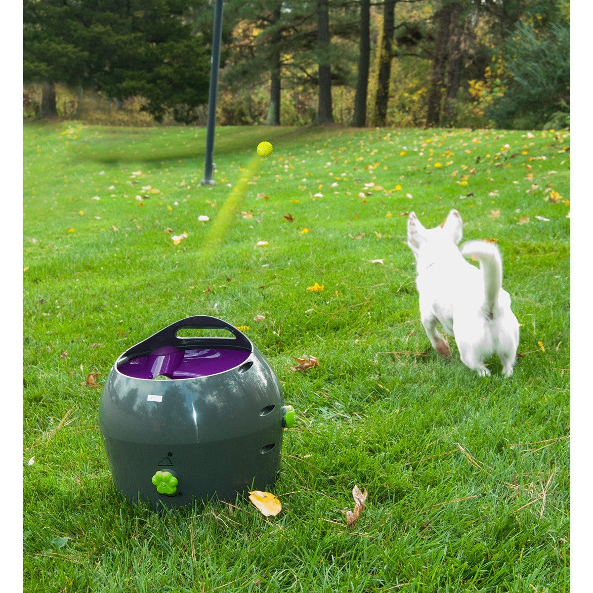 This ball thrower for dogs has built-in safety features to keep your best friend safe during playtime. Electronic motion sensors detect if your pet is within 7 feet of the dog ball launcher hole and won’t launch a ball until your dog moves further away or to the side out of view of the motion sensor. The Automatic Ball Launcher also uses an audible tone to signal when a ball is about to be thrown, so your dog is always ready. To keep your high-energy dog from becoming overworked, this dog toy will enter an automatic sleep mode after 30 minutes of playtime to give your dog 15-minutes to rest.