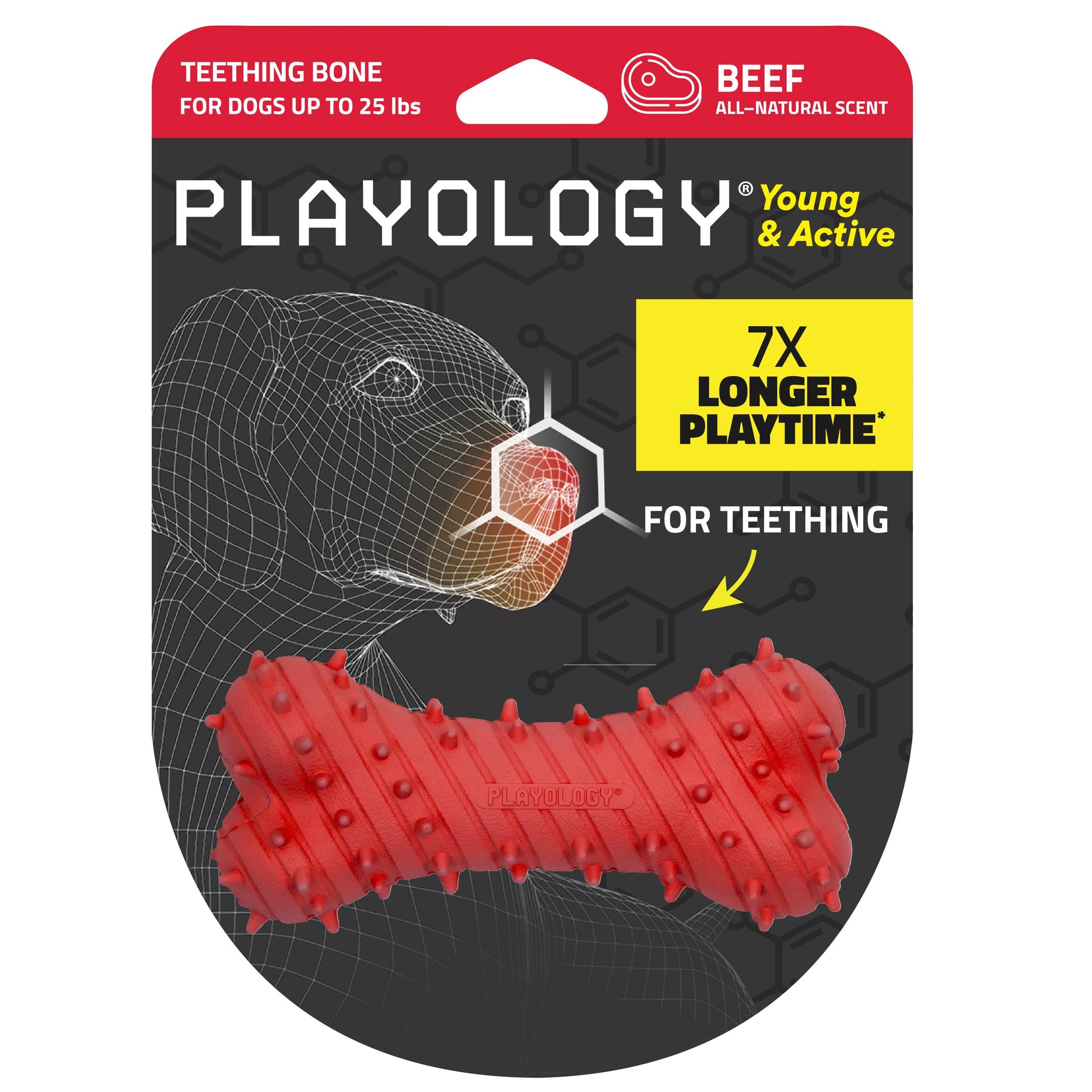 MEET THE TEETHING BONE: Thoughtfully designed with spikes soft enough to chew but tough enough to last, a fun squeaker, and an all-natural Beef scent, the Puppy Teething Bone is designed to aid in puppies’ early development.