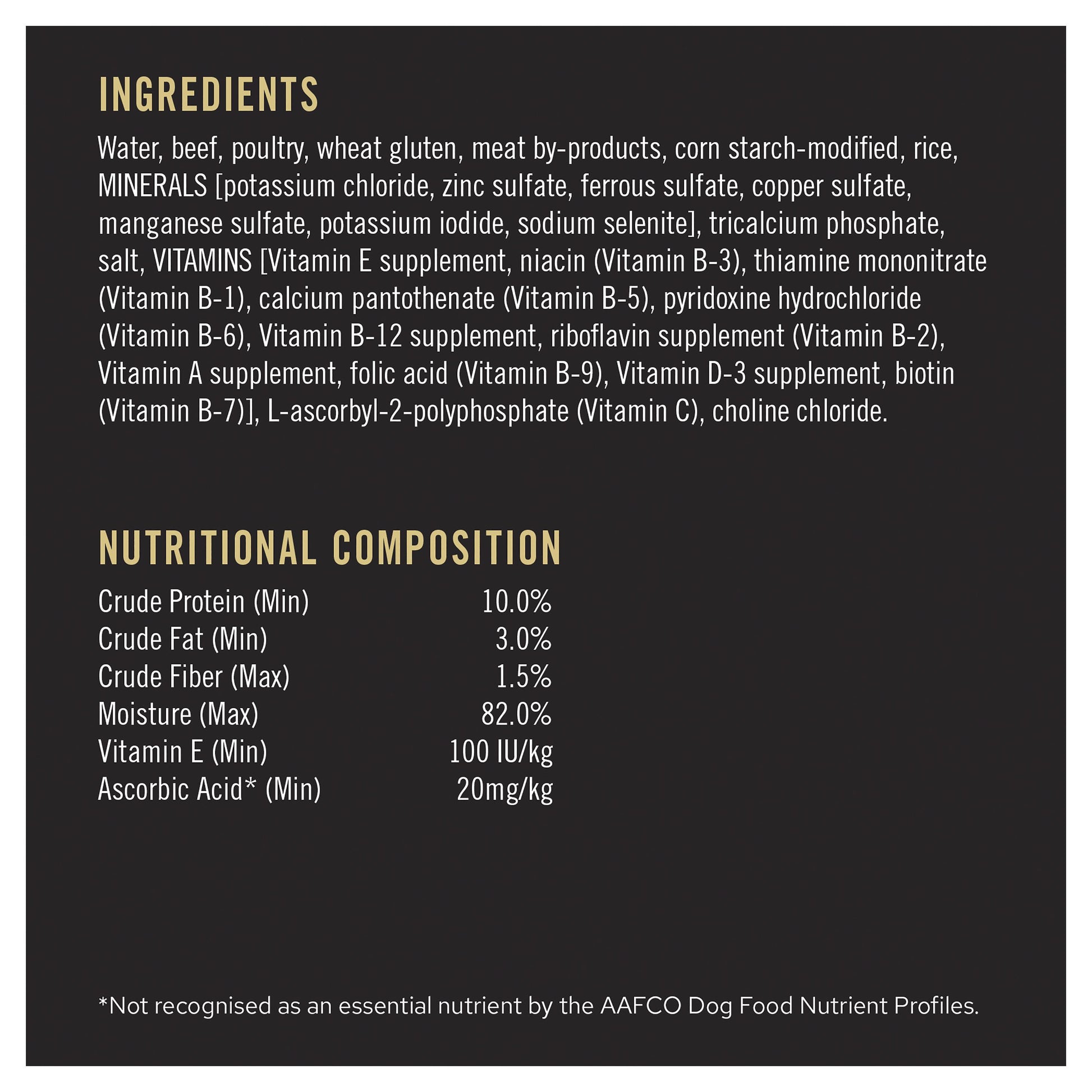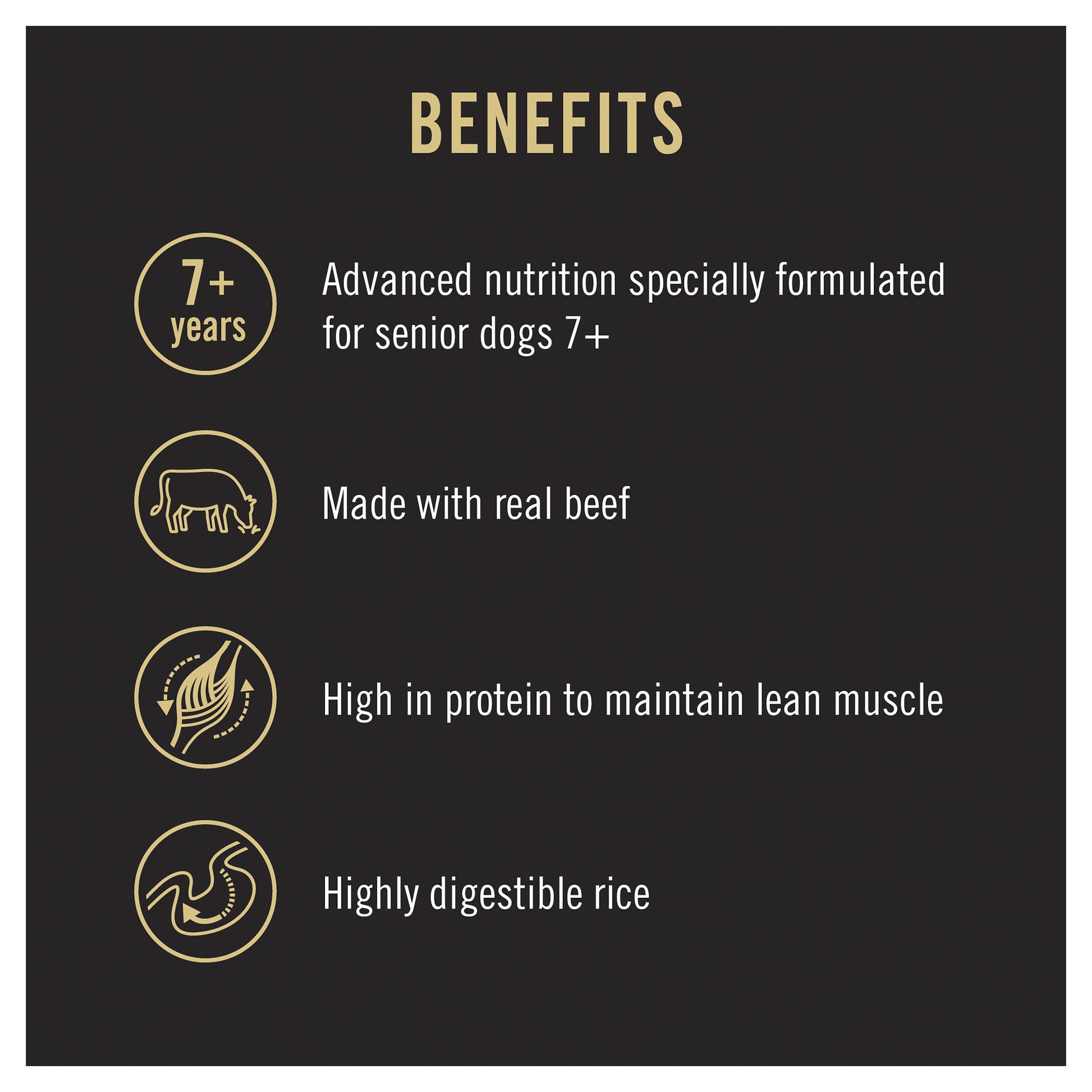 We formulate this high protein wet dog food with real beef and highly digestible rice that’s gentle on your dog's digestive system. Along with savoury dog food gravy and a great taste dogs love, they get high protein to maintain lean muscles. They get 23 essential vitamins and minerals in every serving to help supply the 100% complete and balanced nutrition senior dogs need to thrive. Plus, the premium wet dog food with gravy helps support a healthy immune system and nourishes their skin and coat.
