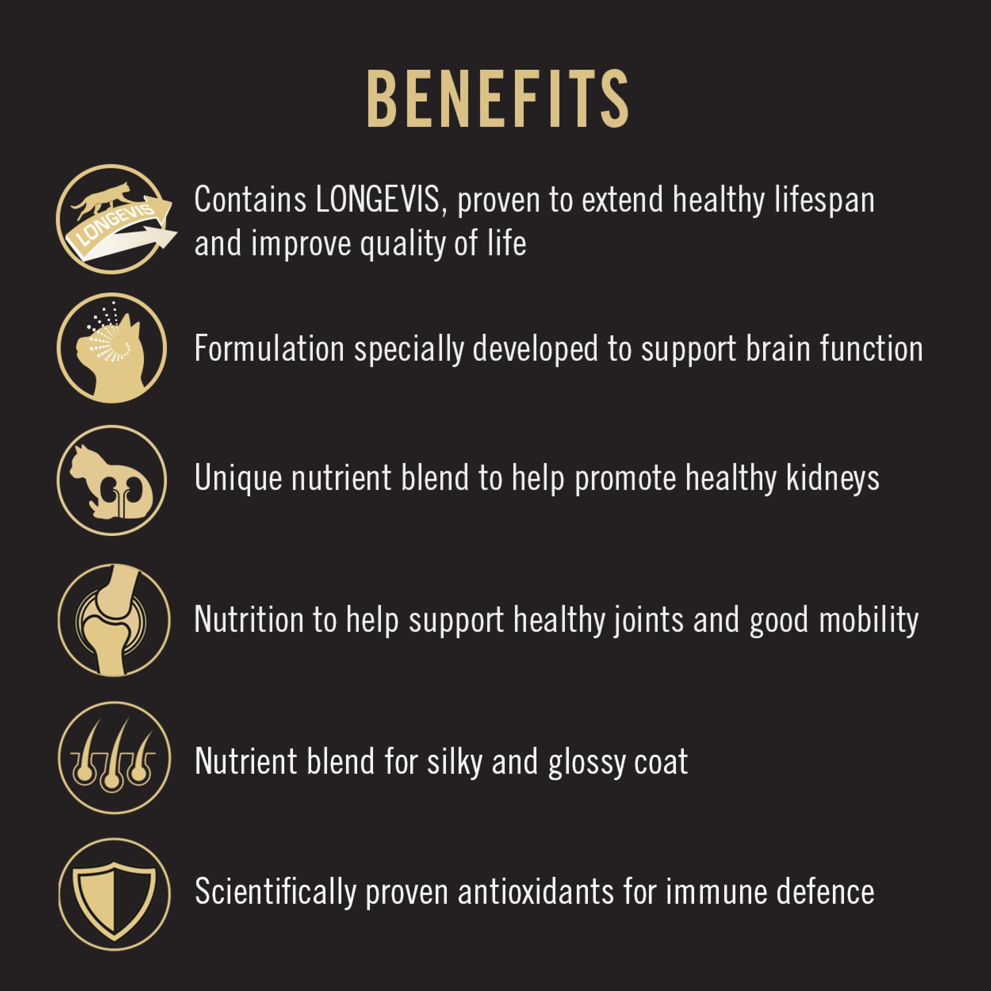 Pro Plan Adult 7+ combines all essential nutrients including vitamins A, C and E, also Omega 3 and 6 Fatty Acids in a high quality diet for cats.