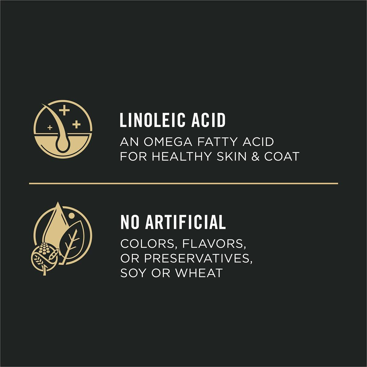 This adult dog food includes linoleic acid, an omega fatty acid to help support his healthy skin and coat, and a high protein level helps maintain lean muscle. Plus, the natural prebiotic fiber in this wet food for dogs nourishes specific intestinal bacteria for digestive health. Highly digestible, it supports optimal nutrient delivery and has no artificial colors, flavors or preservatives. This high protein dog food provides 23 essential vitamins and minerals and is 100 percent complete and balanced for adult dogs.