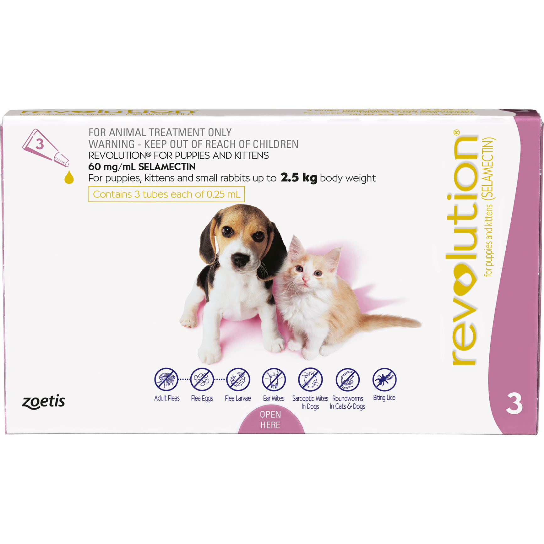 Revolution Flea Treatment for Puppies & Kittens is an easy-to-administer, all-in-one flea treatment for puppies, kittens and rabbits under 2.5kg that simply works inside and out for a full month.